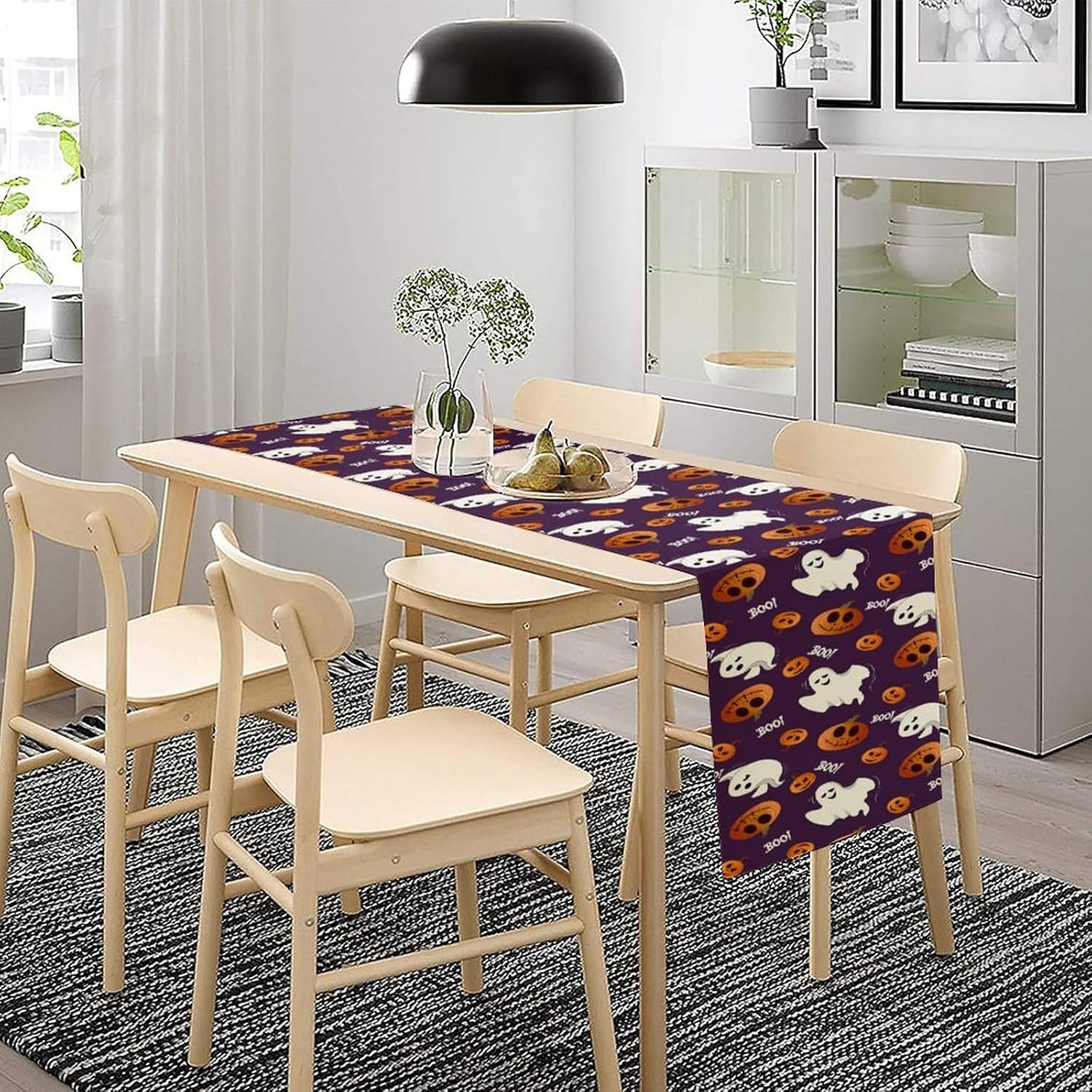 Halloween Table Runner,Ghost Pumpkin Halloween Table Runner for Kitchen Dining Table Decoration Home Party Decor 13x60 Inch