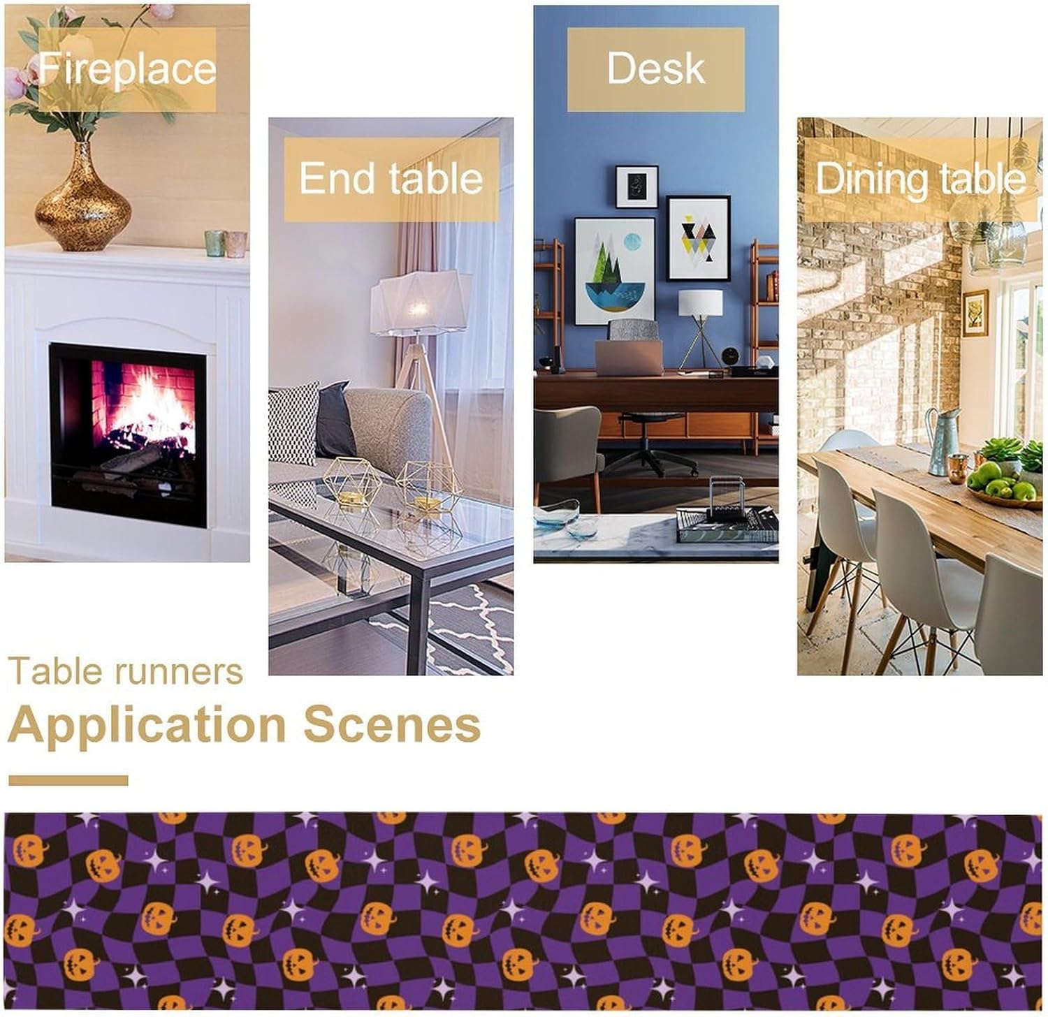 Halloween Table Runner,Purple Checkered Pumpkin Table Runner for Kitchen Dining Table Decoration Home Party Decor 13x90 Inch