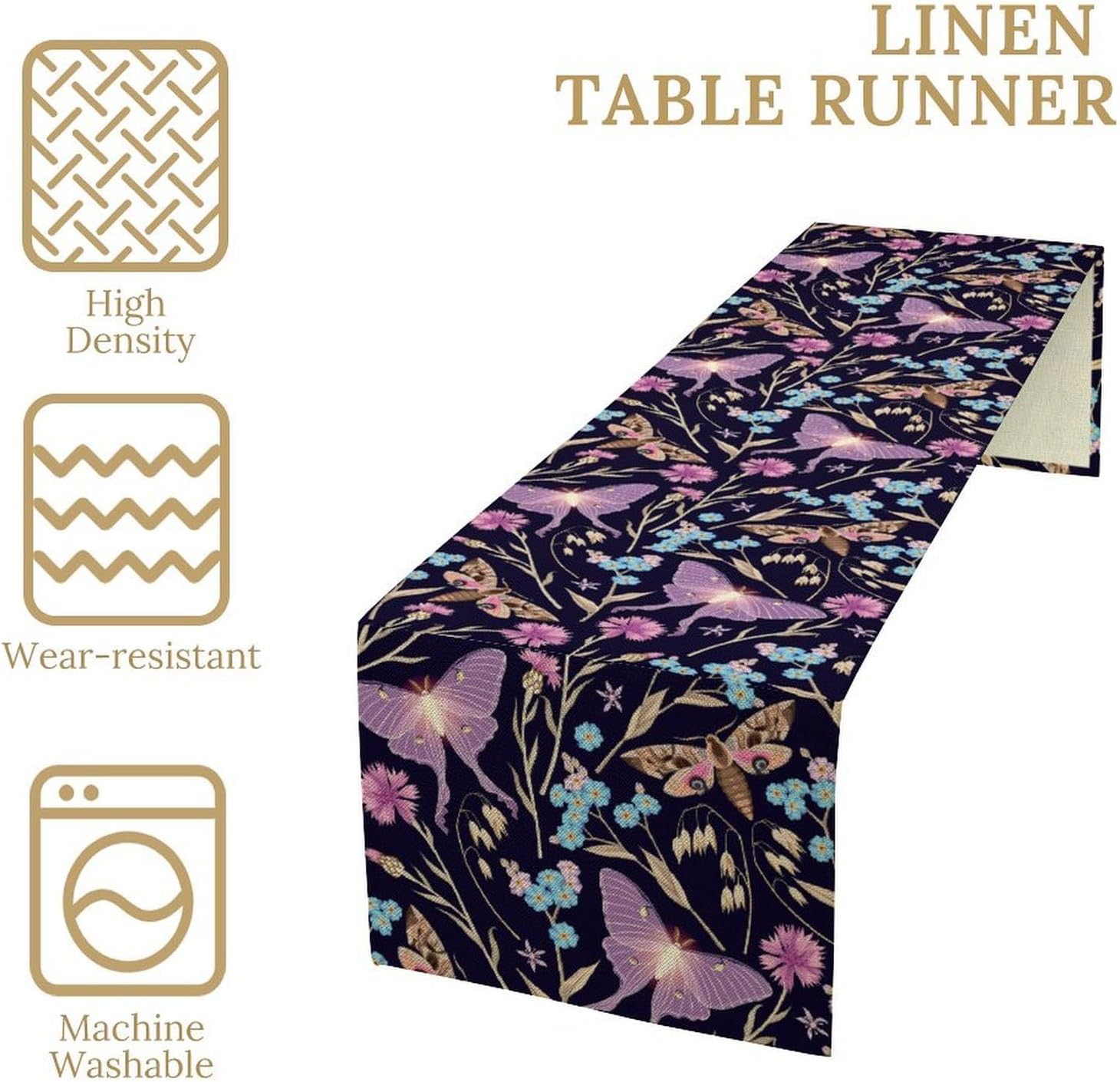 Moth Table Runner, Boho Aesthetic Moth Magic Table Runner for Home Kitchen Dining Party Indoor Outdoor Decoration 13x90 Inch