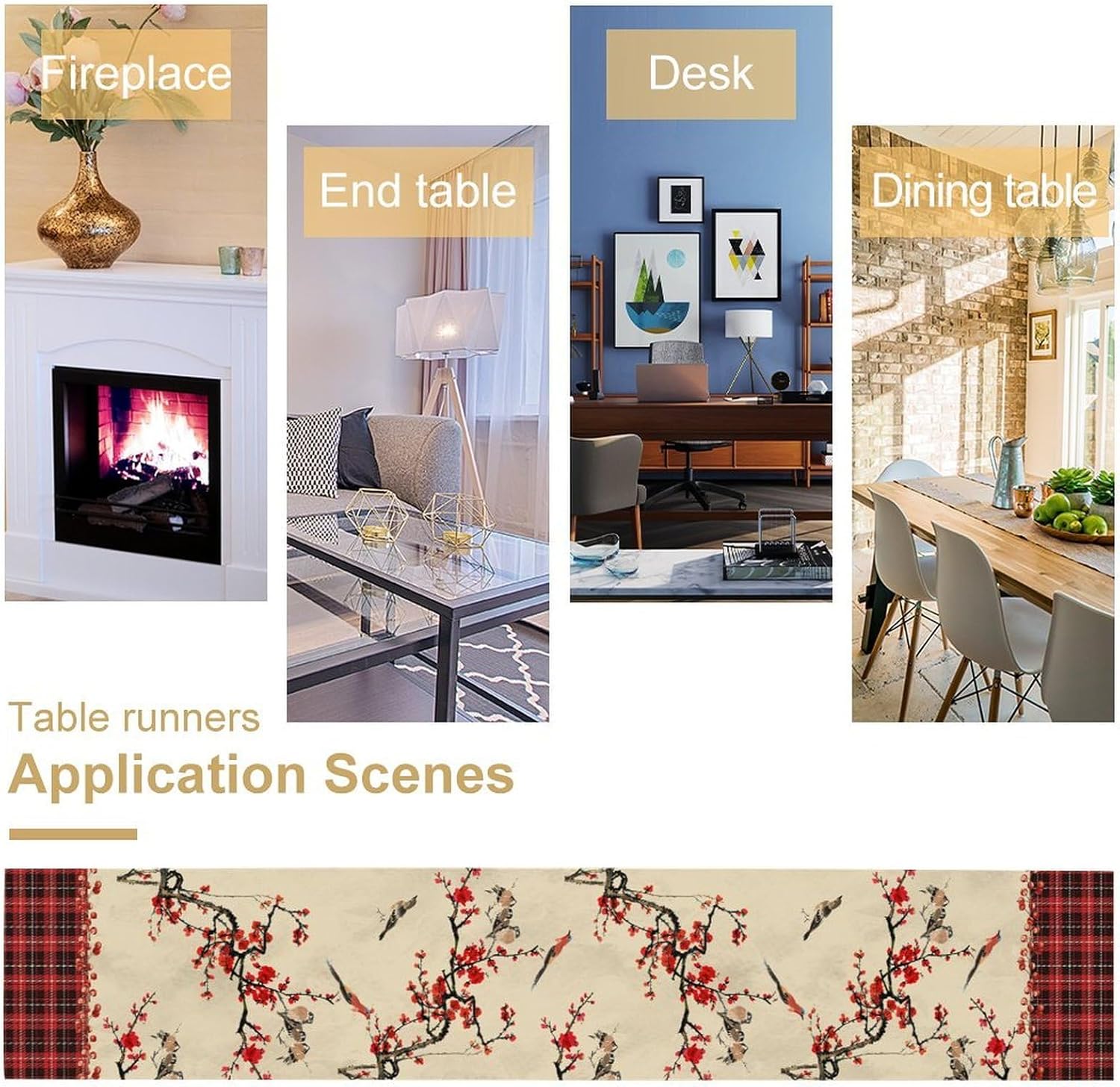 Bird Table Runner,Red Black Buffalo Plaid Blossom Seasonal Table Runner for Kitchen Dining Table Decoration Home Party Decor 13x120 Inch