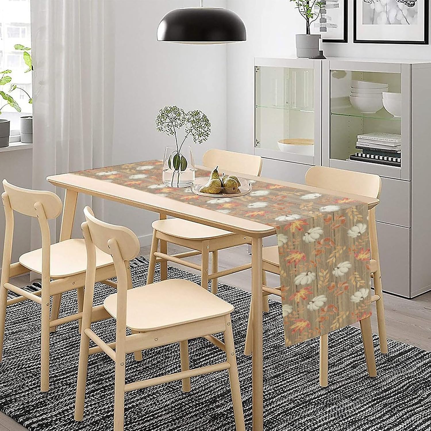Autumn Table Runner,Pumpkins Maple Leaves Wood Fall r Seasonal Table Runner Kitchen Dining Table Decoration for Home Party Decor 13x108 Inch