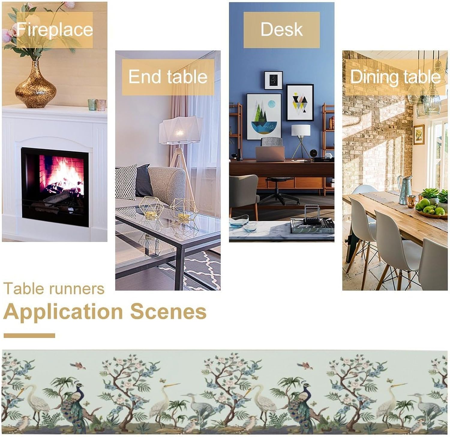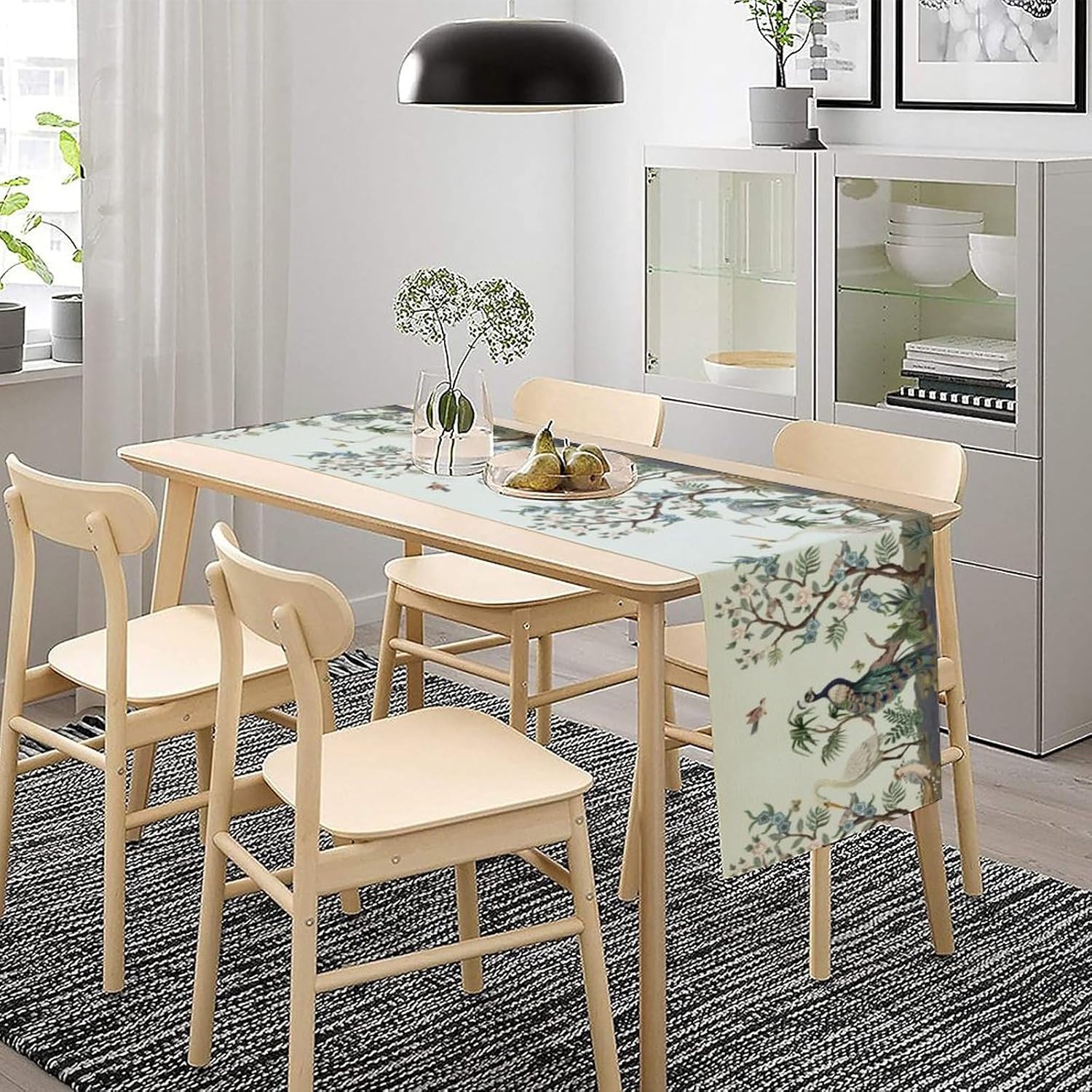 Peacock Table Runner,Retro Chinese Peonies Flowers Peacock Table Runner for Home Kitchen Dining Party Indoor Outdoor Decoration 13x36 Inch