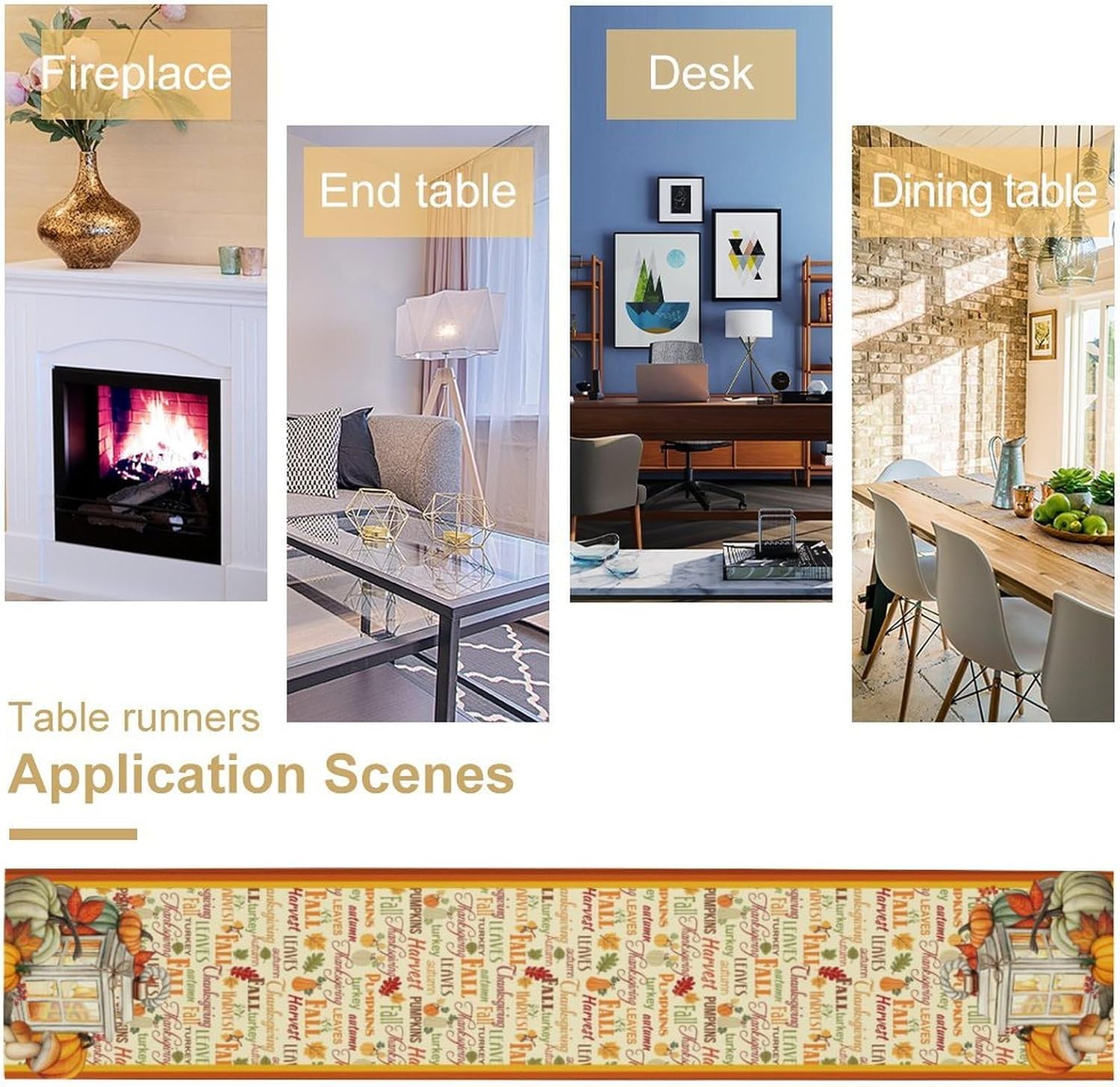 Autumn Table Runner,Farmhouse Leaves Pumpkin Thanksgiving Table Cloth for Kitchen Dining Table Decoration Home Party Decor 13x36 Inch