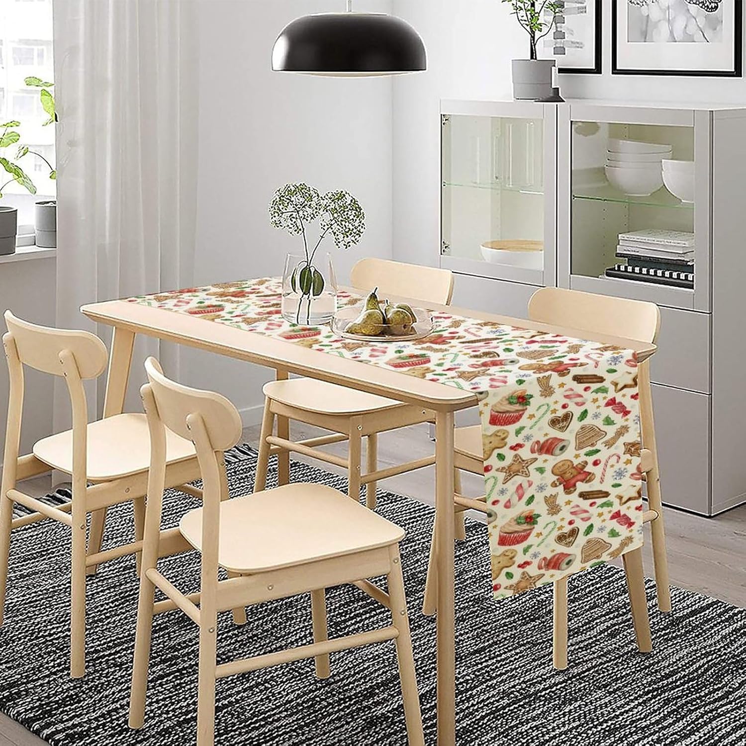 Christmas Table Runner, Christmas Gingerbread New Year Xmas Table Cloth Kitchen Dining Table Decoration for Home Party Decor 13x70 Inch