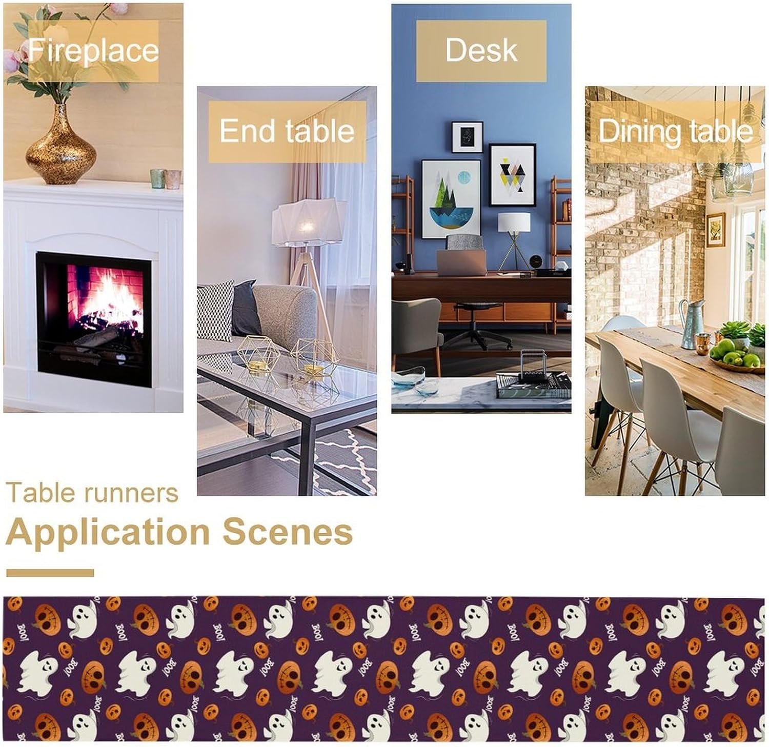 Halloween Table Runner,Ghost Pumpkin Halloween Table Runner for Kitchen Dining Table Decoration Home Party Decor 13x120 Inch