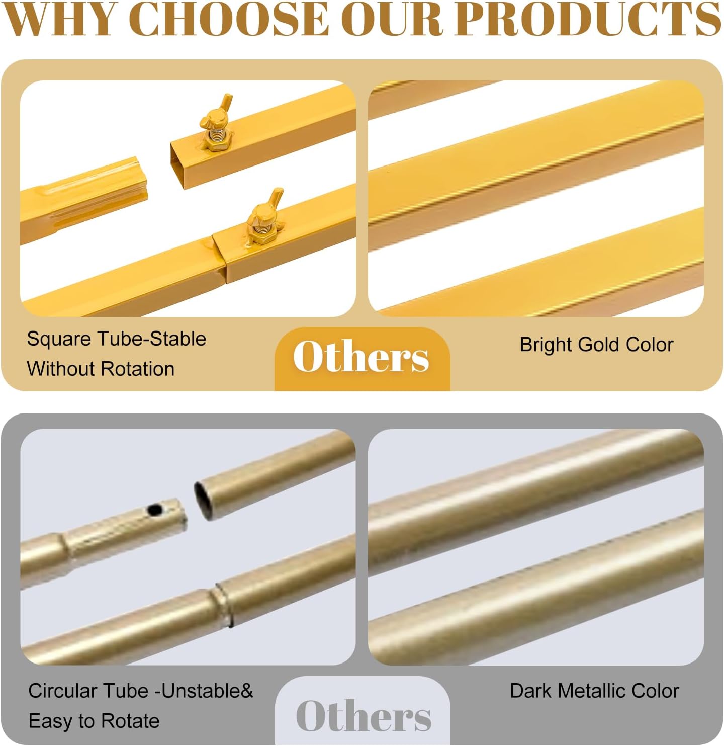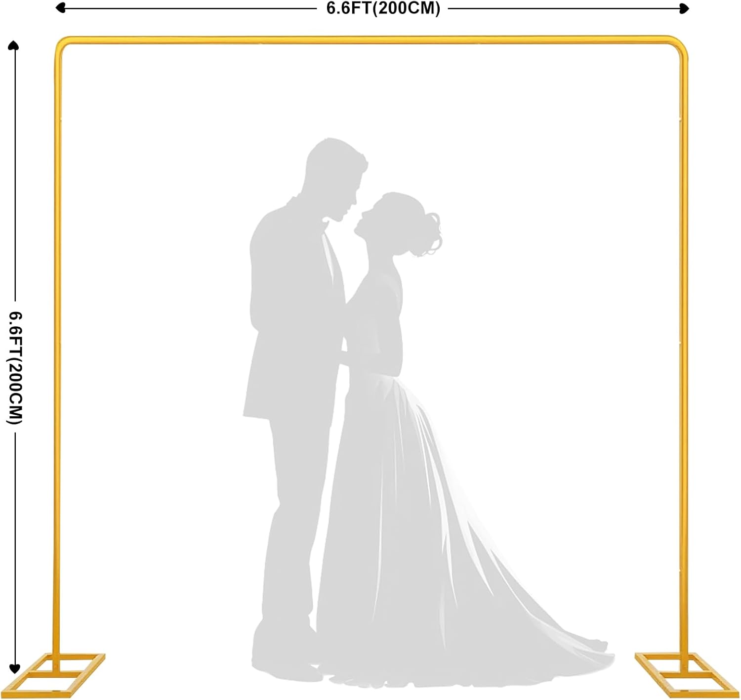 - Sturdy Metal Arches: This metal square background frame measures 6.6 feet x 6.6 feet in arch shape and is made of ultra thick rust resistant metal with exquisite gold accents, creating an elegant balloon background frame