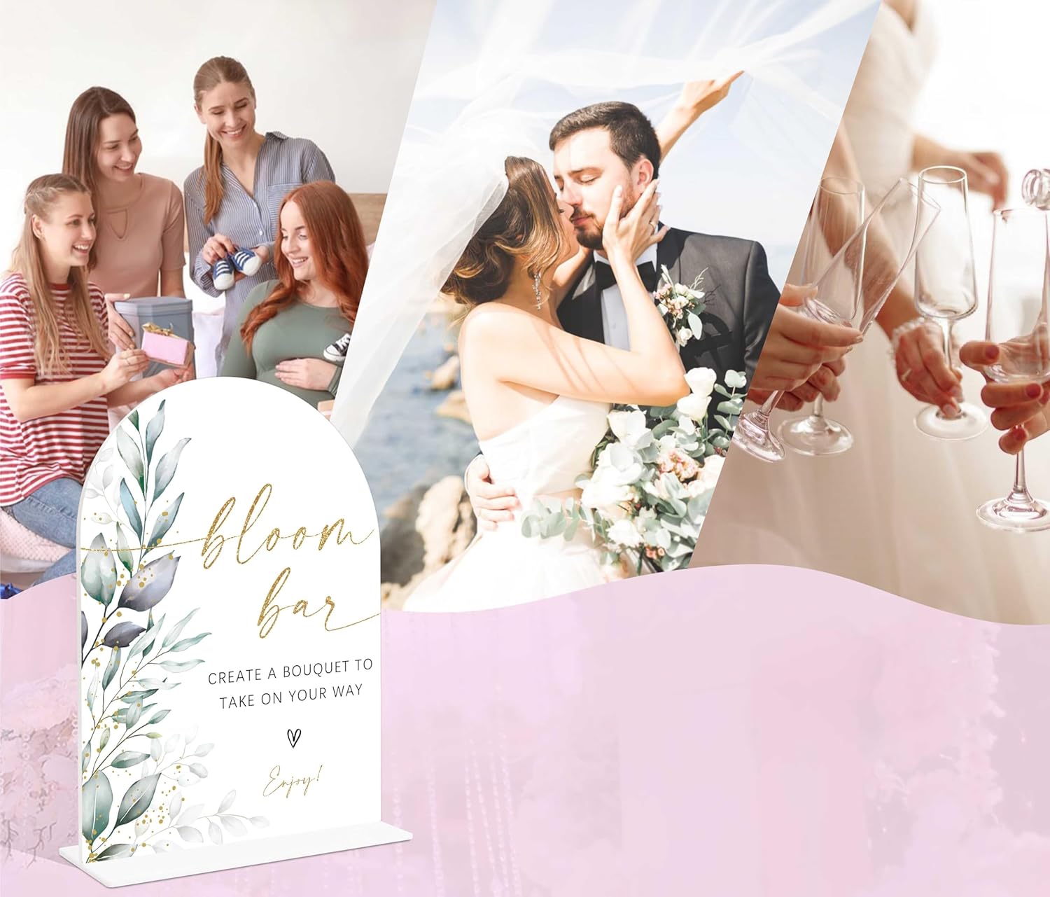 Acrylic Wedding Signs, Greenery Theme Bloom Bar Sign, Wedding Reception Signage, Bridal Shower Table Decor with Stand, Bloom Bar Supplies for Engagement, Anniversary, Newlywed Events and Parties, 01