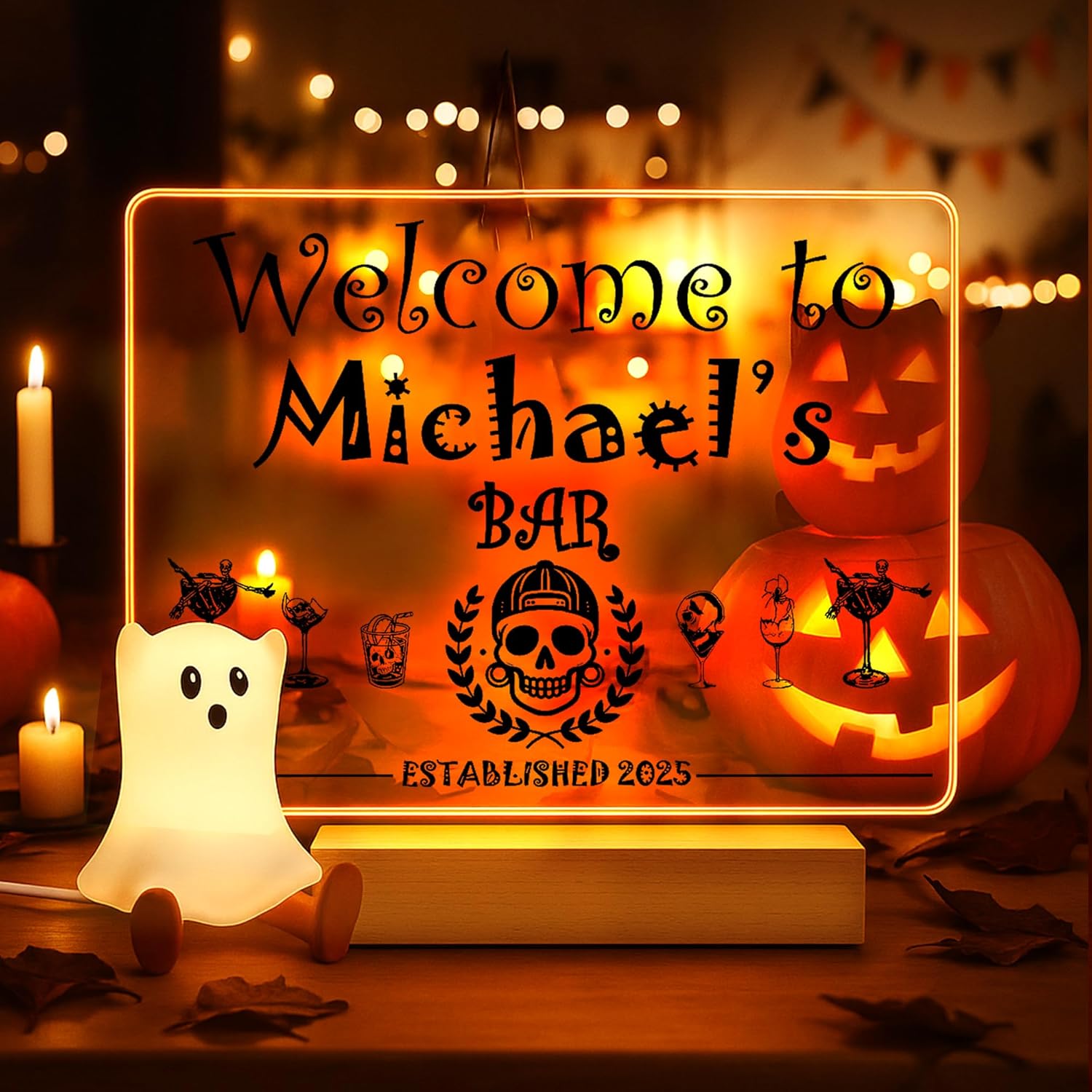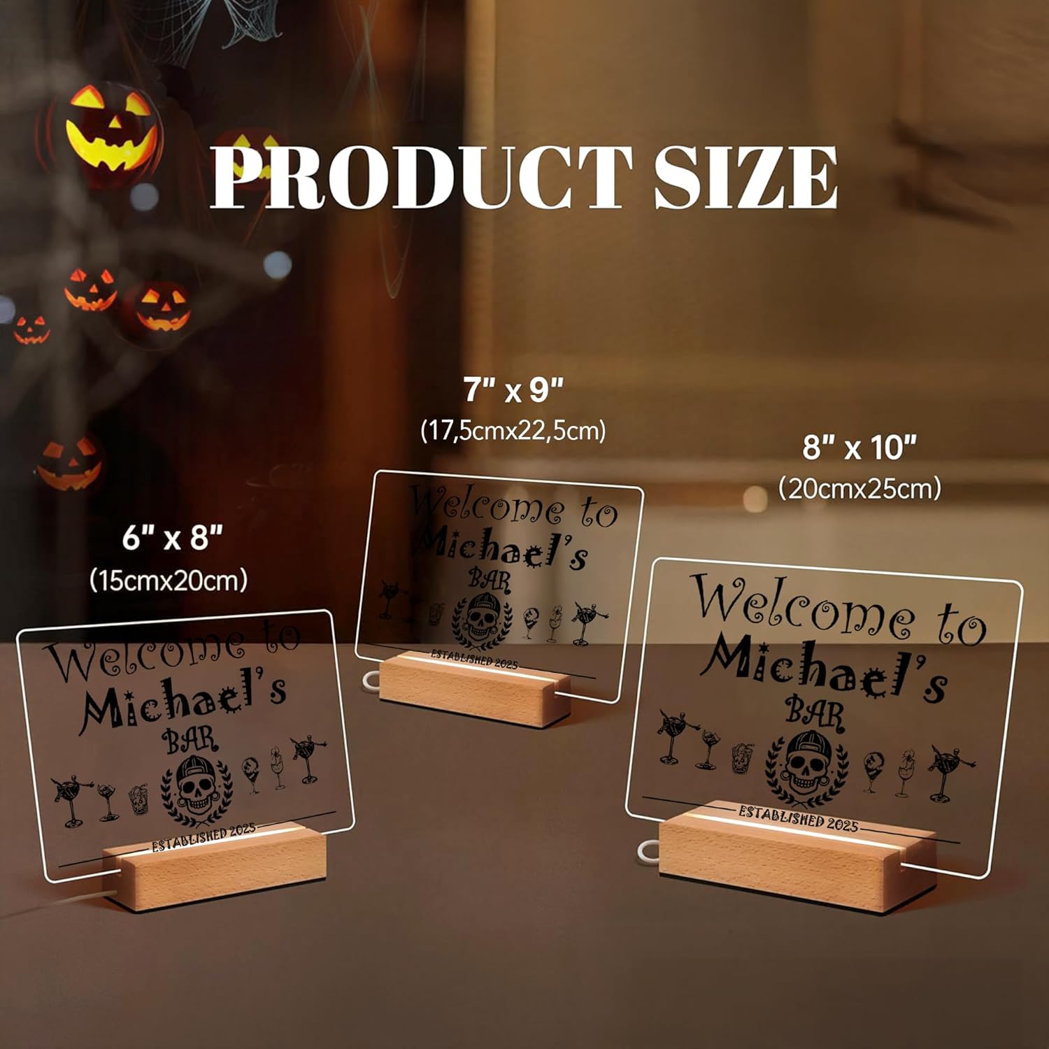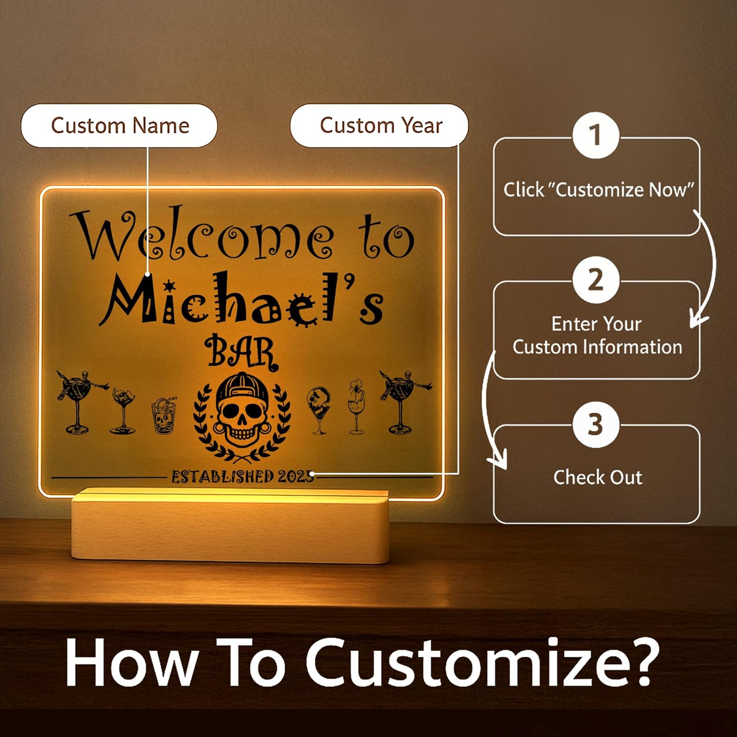 Personalized Bar Gifts for HOME BAR, Custom Name Date Acrylic Light Up Signs, Customized Acrylic Plaque with Night Light, Personalized Night Light for Man Cave Decor