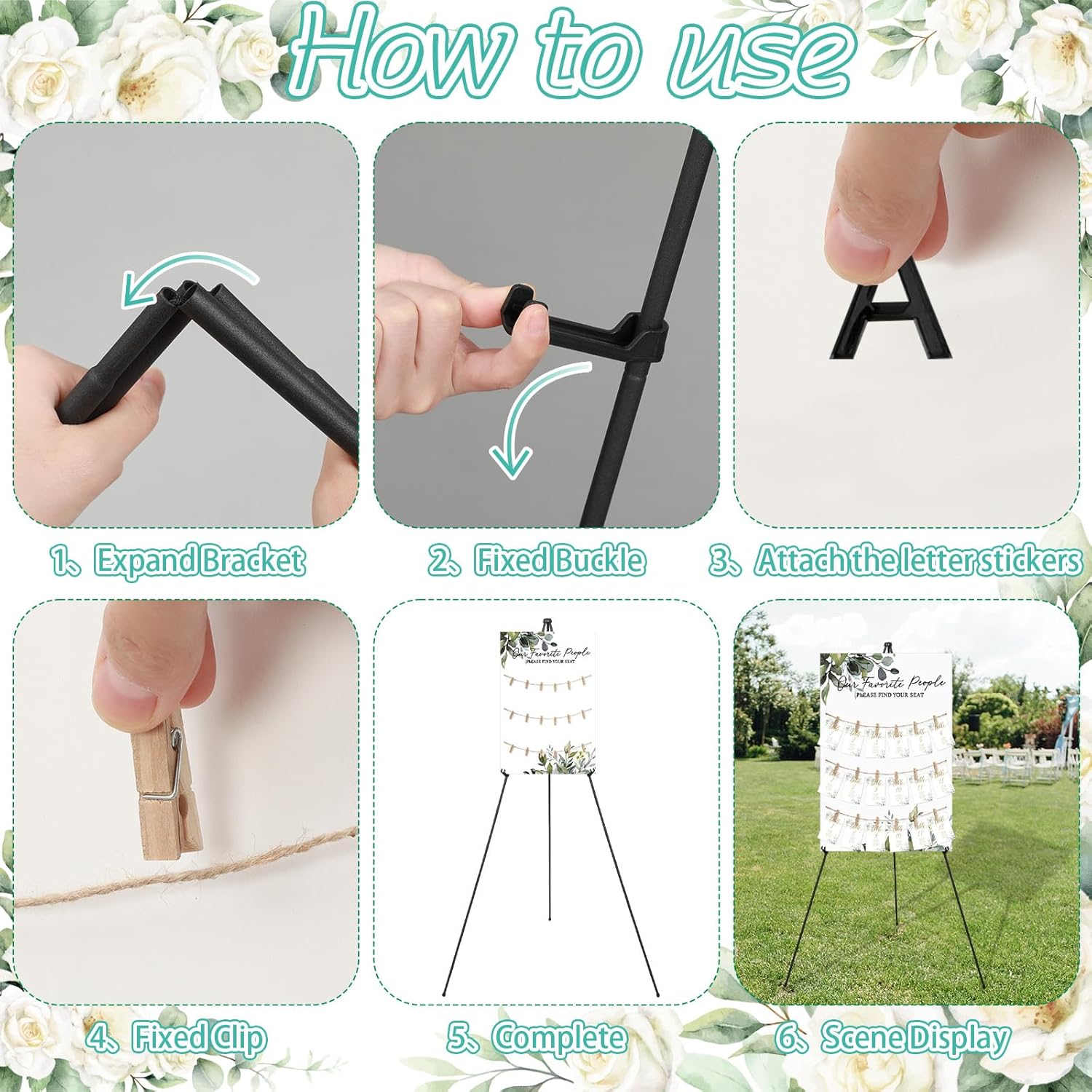 - Durable Material: the easel stand for display wedding sign adopts a rust-proof metal frame, a stable triangular structure, strong load-bearing capacity, and can be disassembled and assembled repeatedly; The seating chart is made of thickened wood material with a smooth and scratch-resistant surface; It is equipped with 20 durable wooden clips and thick hemp ropes, which are not easy to deform and break