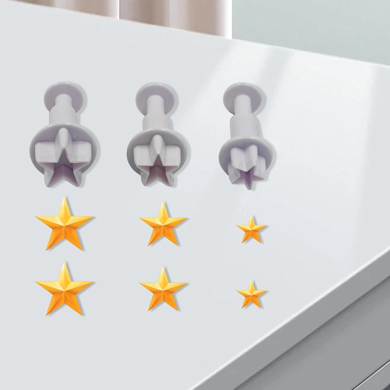 pson 3Pcs Plunger Cookie Cutter Set, Mini Plastic Biscuit Molds for Cake Decorating, Baking, Fondant, and DIY Crafts(Star)