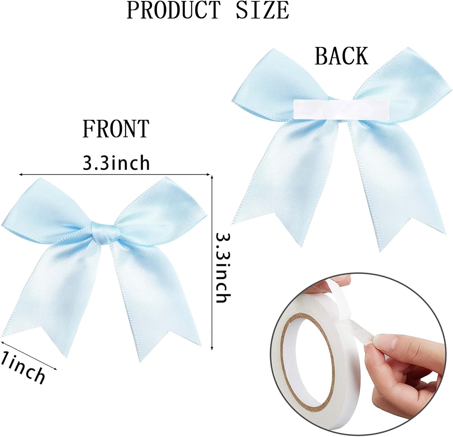 50 Pieces Gift Wrap Bows Premium Satin Ribbon Bows 3.3 Inch Craft Bows for Gift Wrapping DIY Treat Bags Holiday Gifts Bag Party Decorations, Wedding Decor Christmas Birthday Presents (Light Blue)