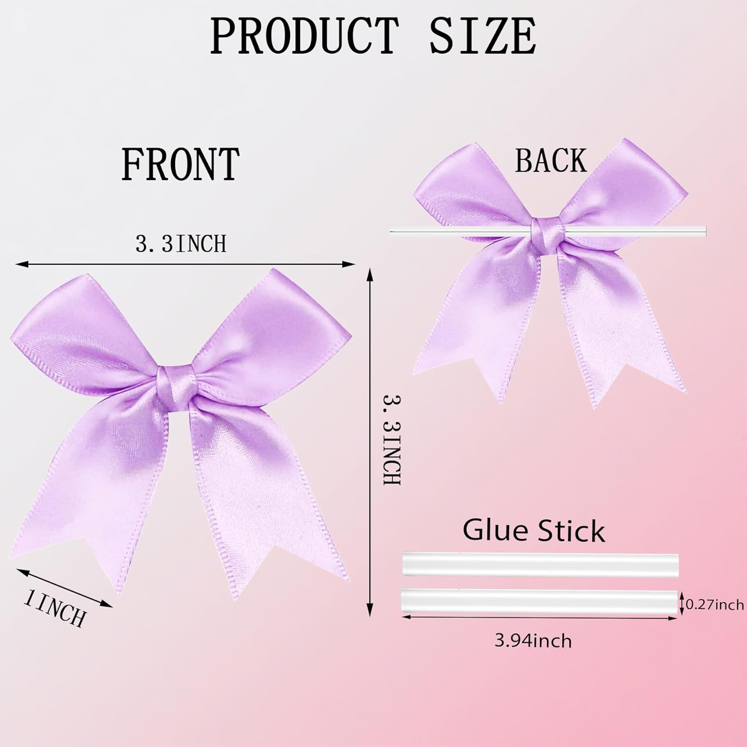 50 PCS Twist Tie Bows Satin Ribbon Bows 3.3 Inch Gift Wrap Bows Craft Bows for Gift Wrapping, Party Decorations Gifts Bag DIY Treat Bags Wedding Decor Baby Shower Christmas (Light Purple)