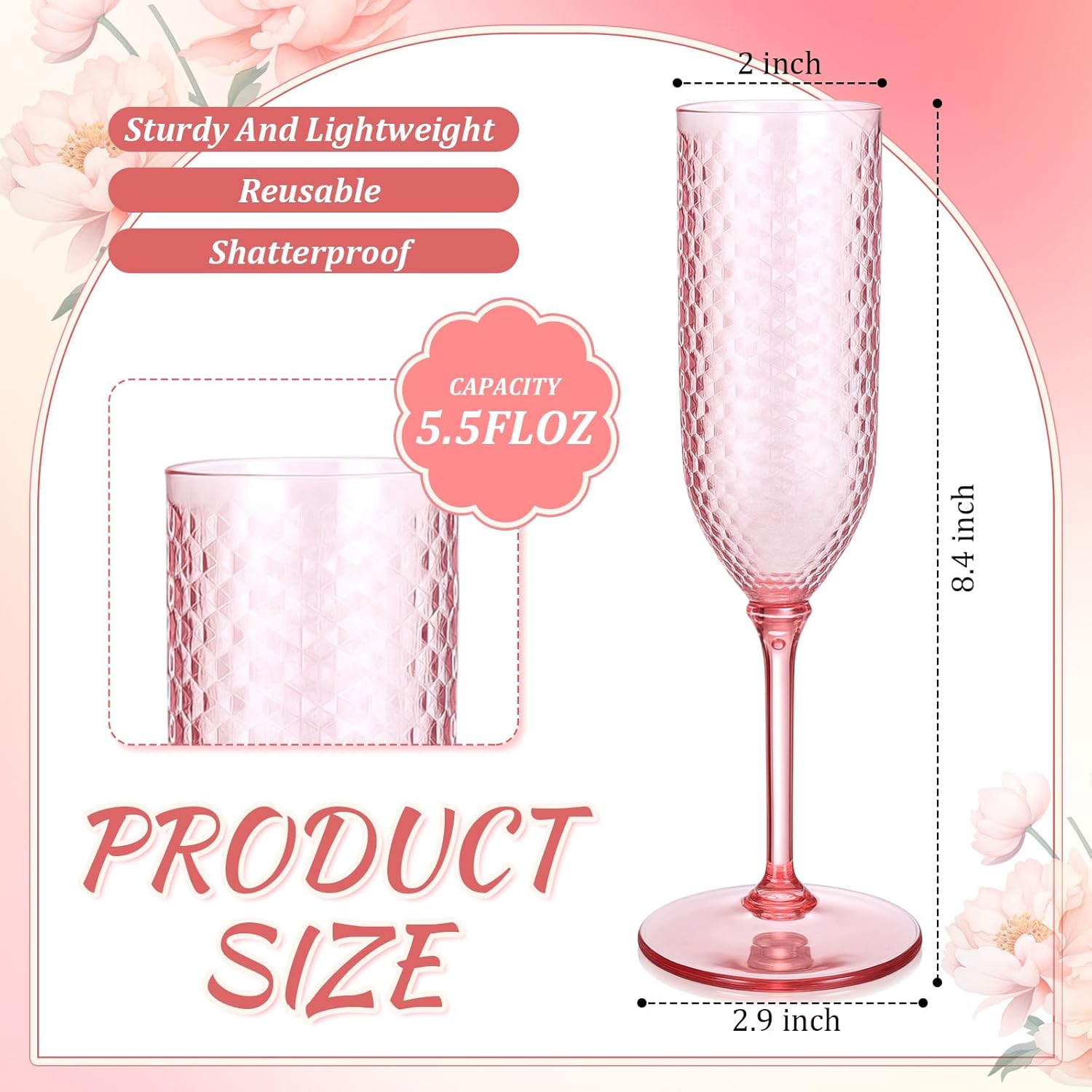 - Classy Diamond Pattern Design: Featuring a beautifully embossed diamond texture, these mimosa glasses plastic blend classic charm with a modern aesthetic; Whether it's a bridal shower, engagement toast, or romantic dinner, these plastic toasting glasses effortlessly set the mood, transforming ordinary moments into unforgettable experiences