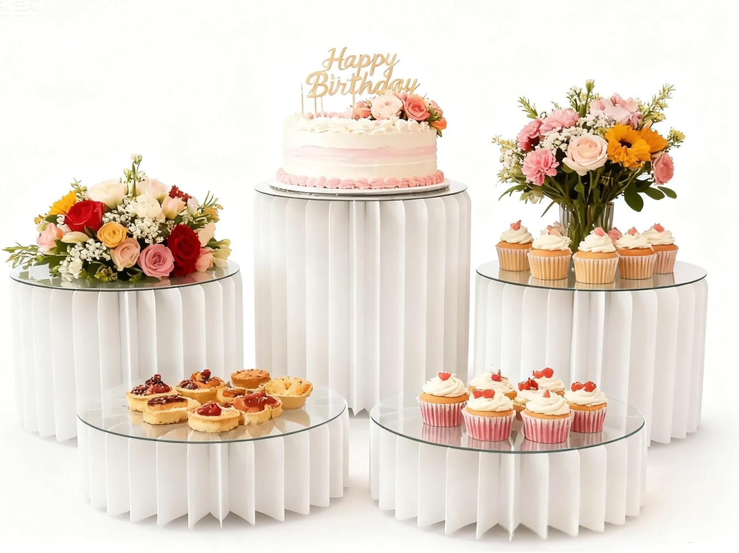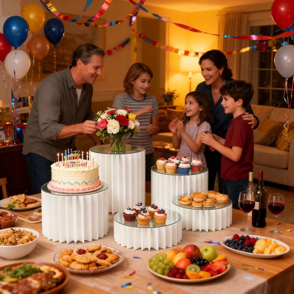 - Ideal Multi-Tier Dimensions: Set includes three stands of different heights—larger: 11.8" diameter × 11.8" height; medium: 11.8" diameter × 7.8" height; smaller: 11.8" diameter × 4" height. Perfect for creating dynamic layered displays at home events or large gatherings