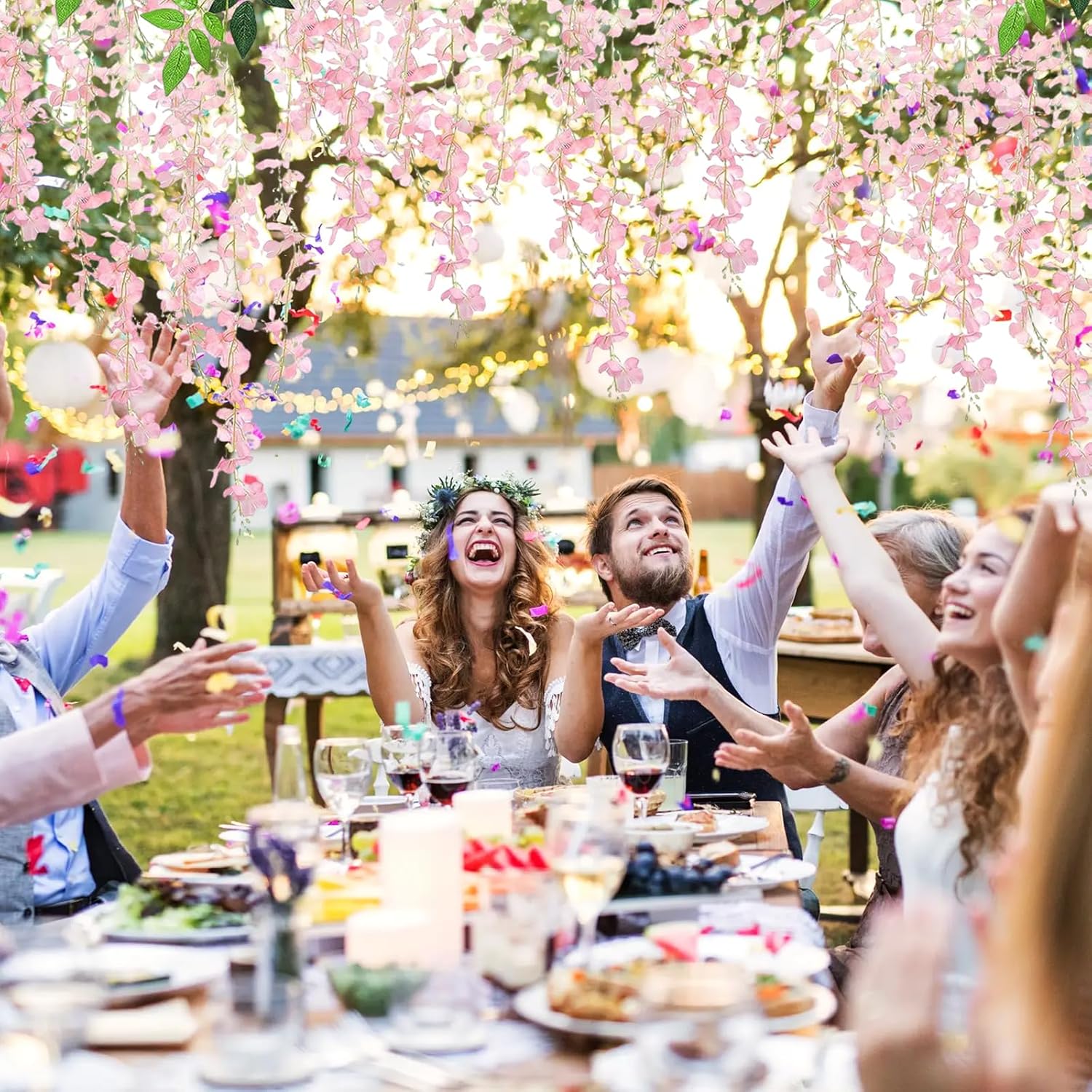 - 【Light Pink Wisteria Garland】Whether you decorate beautiful light pink wisteria hanging flowers indoors or outdoors, you can achieve a magical decorative effect. Decorating the interior makes your home look full of life while decorating the exterior makes the environment more springy.