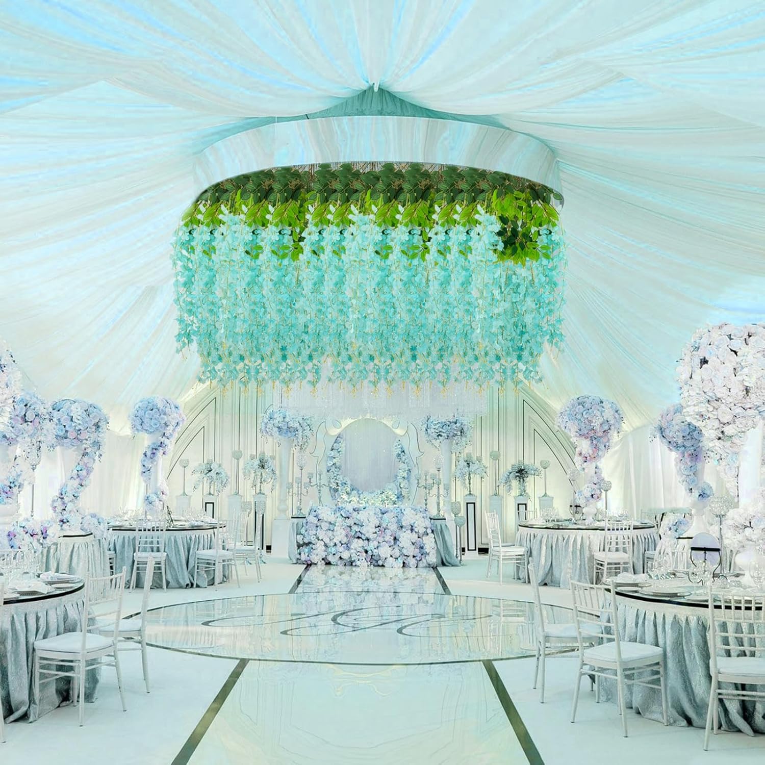 - 【Cycle Used】The lake blue artificial wisteria garland is made of silk, the stem is made of metal wire and plastic, and it can be easily bent and recovered, so you can use it many times, very environmentally and cost-effective.