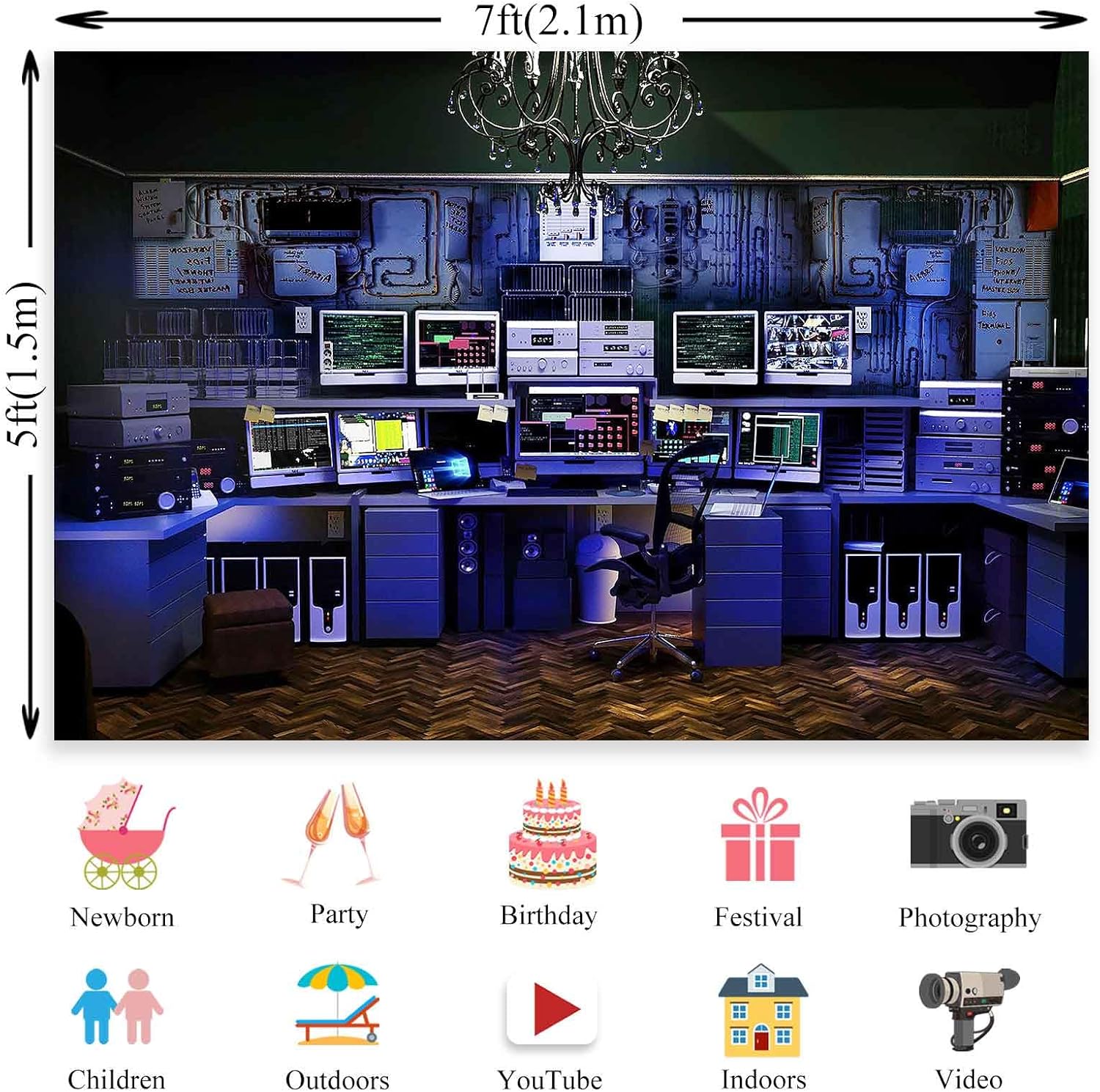 Custom Backdrop with Size Retro Computer Office Backdrop Blue Hacker Room Background for Photography Party Room Decor Photo Booth Props Supplies YUNBDZ008