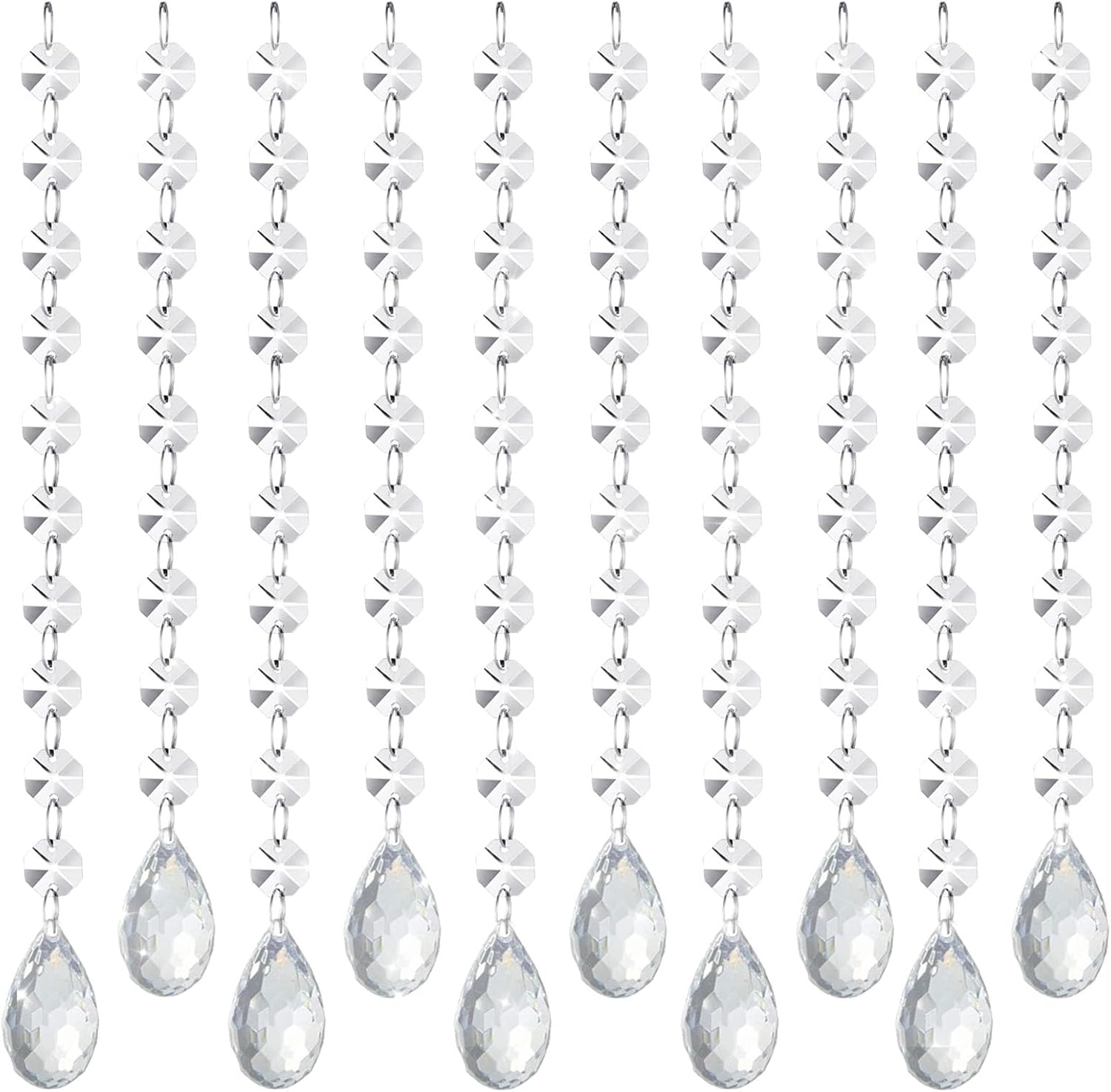 - 【Product Include】You will receive 10 pcs of crystal garland strands. The clear octagon bead is 14mm each; The metal split ring is 12mm each; The teardrop crystal is 30mm x 15mm; total 10 Strings, one string is 3.3ft long; the total length of the crystal garland strands is 33ft. The crystal octagon beads are connected by metal split rings and are easy to disassemble, so you can adjust the length according to the decoration needs.