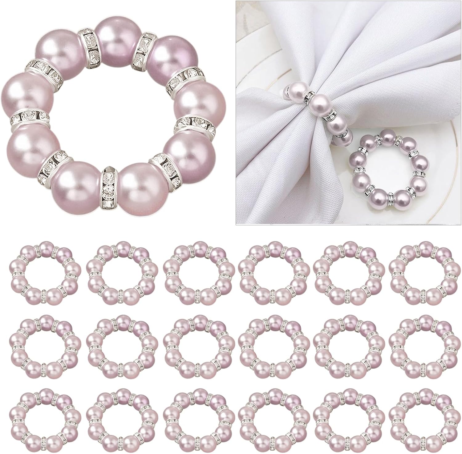 - Elegant Napkin Rings Set: This set includes white or pink napkin rings made of imitation pearl and rhinestone, adding a touch of elegance to your table setting. Perfect for daily use and special occasions like weddings, parties, and more
