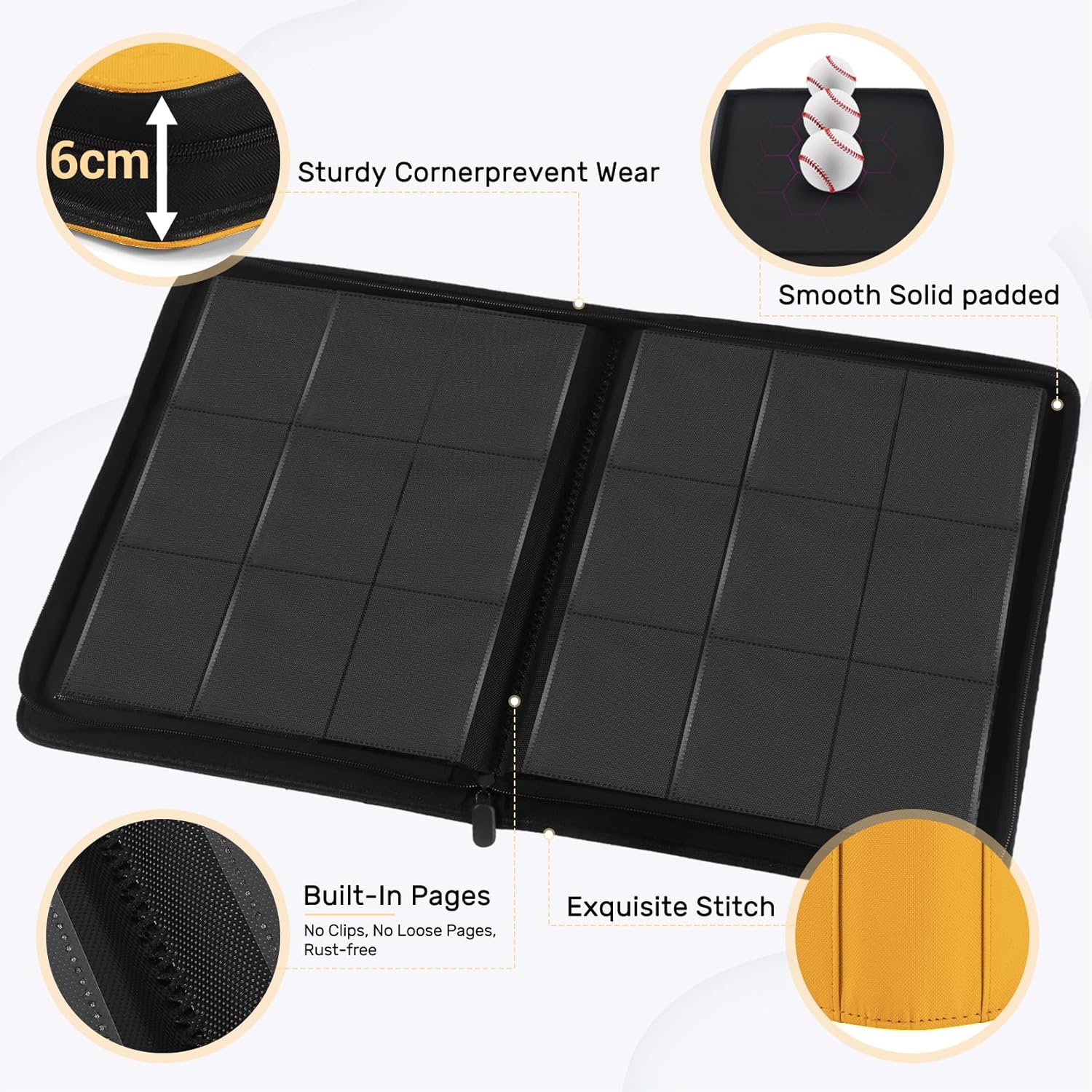 - Side Loading & Ultra-Clear Pages: Featuring archival-grade acid-free & non-PVC materials, this side-loading card binder prevents fading and card stickiness while its ultra-clear anti-scratch sleeves showcase holofoil details and securely lock cards in place—ideal for prolonged storage and collection display.