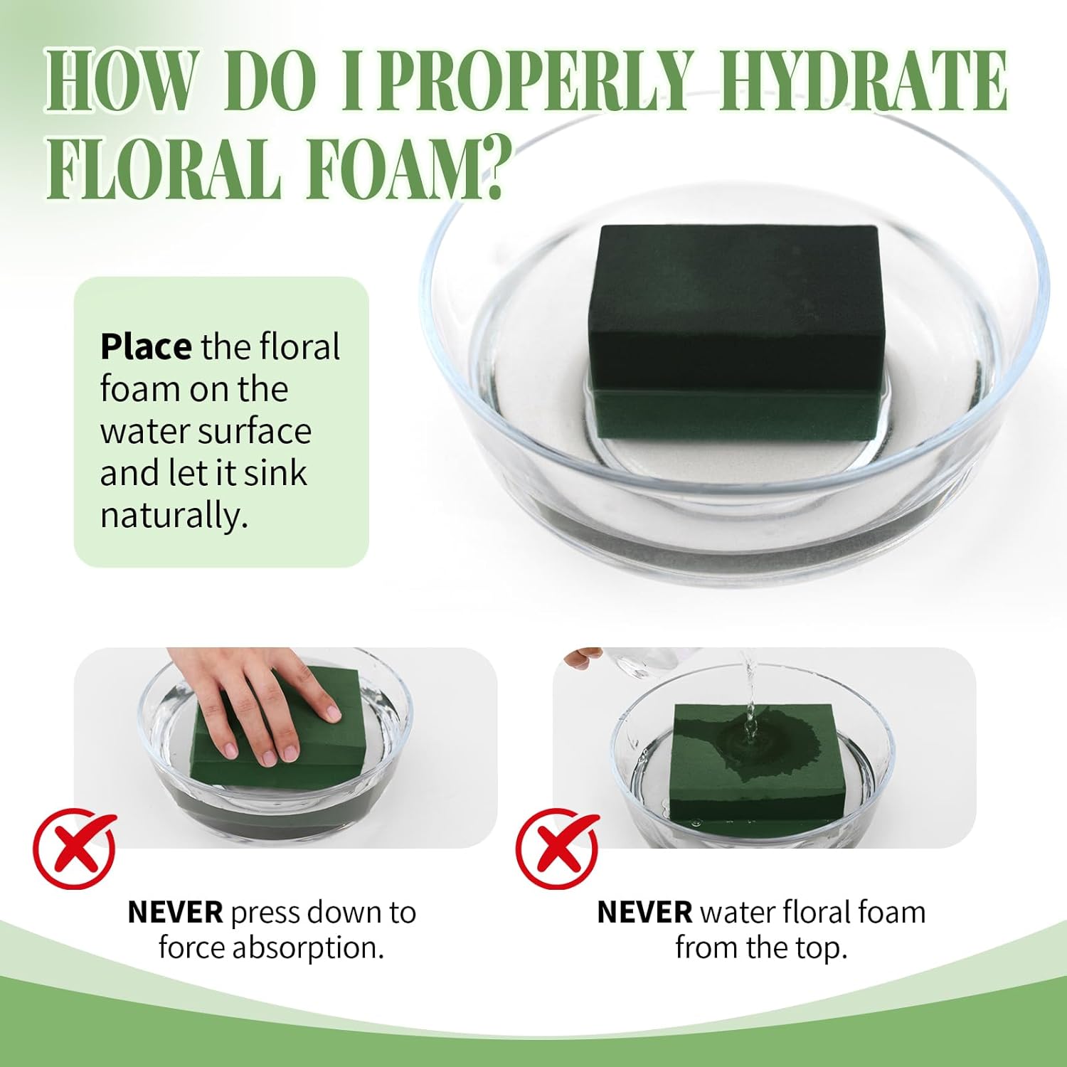 - 【Wet & Dry Universal】 Our floral foam can be used for both wet and dry flower arrangements. Before using the foam for flower arrangements, you need to soak it naturally in water, please don't press it so that the flower foam can absorb enough water. So that the flowers can maintain their natural and beautiful blooming after being inserted. Inserting dried or artificial flowers does not require soaking the plant foam and can be directly inserted and fixed.
