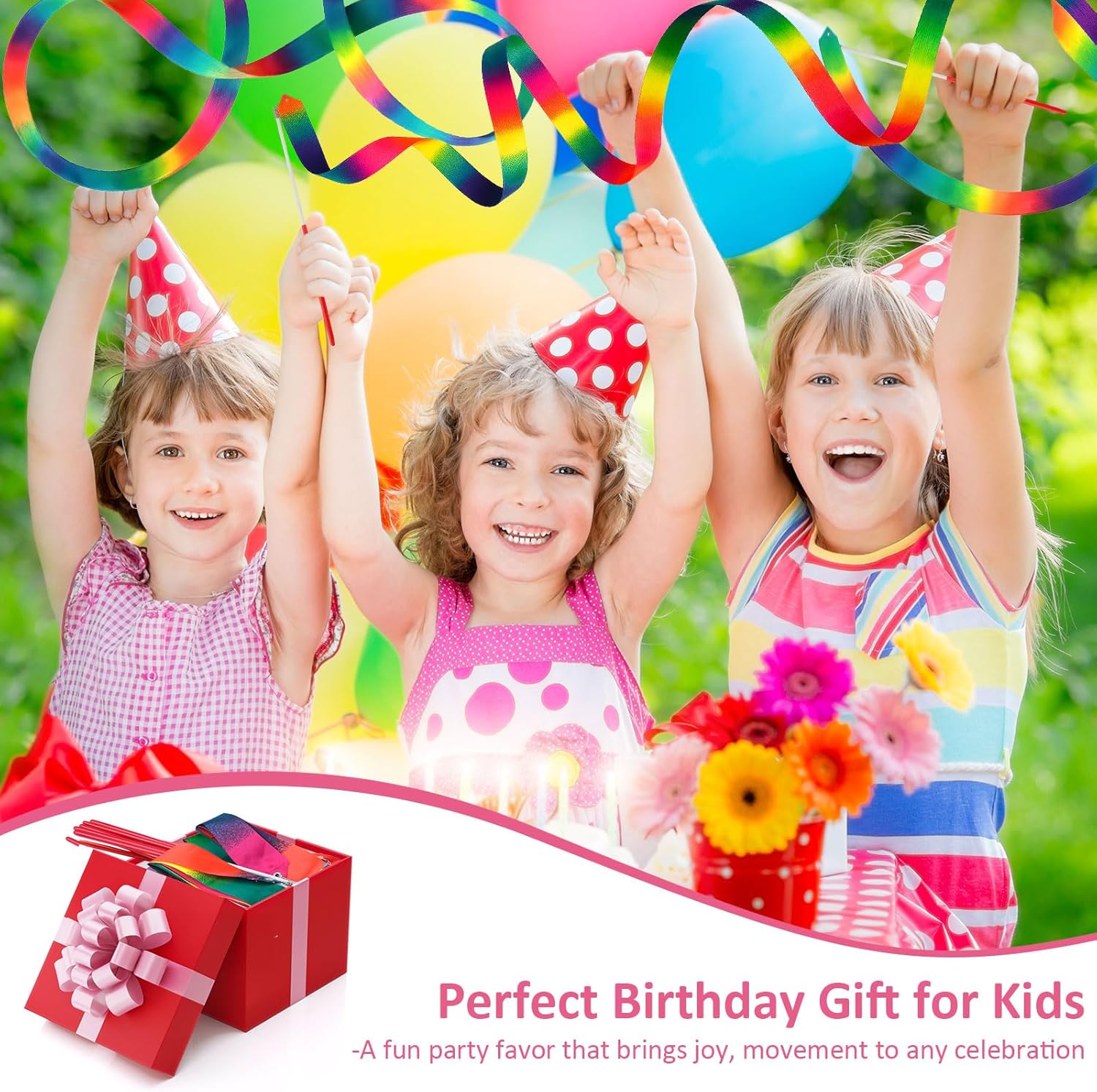 - 12 Vivid Colors: Dance Ribbons set include 12 vibrant dance ribbons, perfect for kids, dance class, birthday party, gymnastics, princess party favors