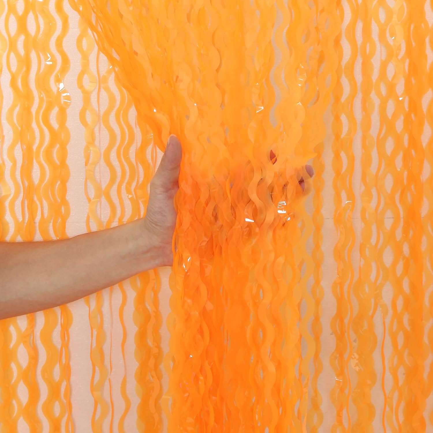 - 【LATEST Shiny Surface +Wavy Shape Tinsel Backdrop】The orange foil curtain backdrop is made of aluminium foil with shiny surface +wavy shape, good for adding sparkle as decorations for parties