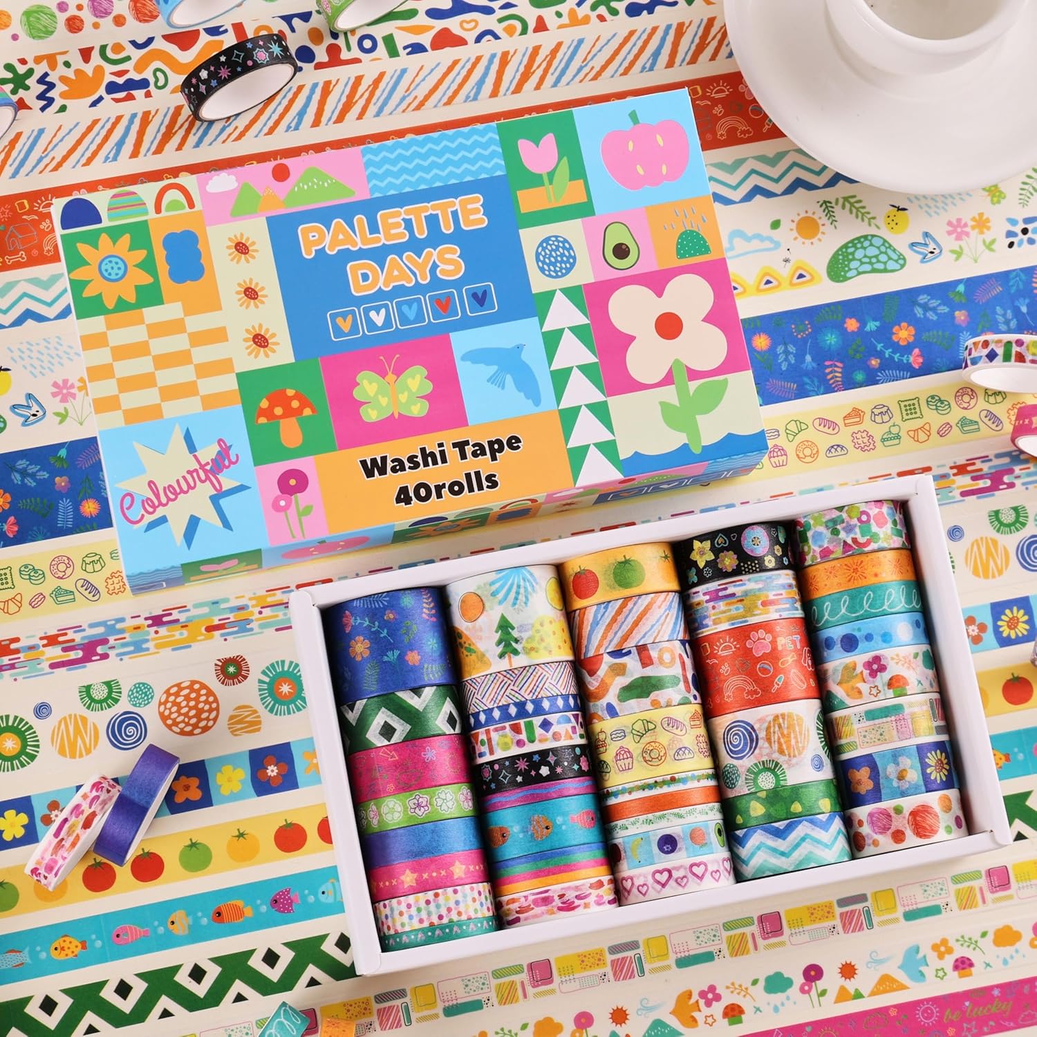 - ✨The washi tape supplies are made of high-grade durable materials. These decorative tapes can be repositioned and torn easily. With accurate printing, they show clean and bright colors that perfectly reflect the "Palette Days" vibe. They can be easily peeled off without leaving any sticky residue, which makes it a great craft tape set for kids and adults alike.