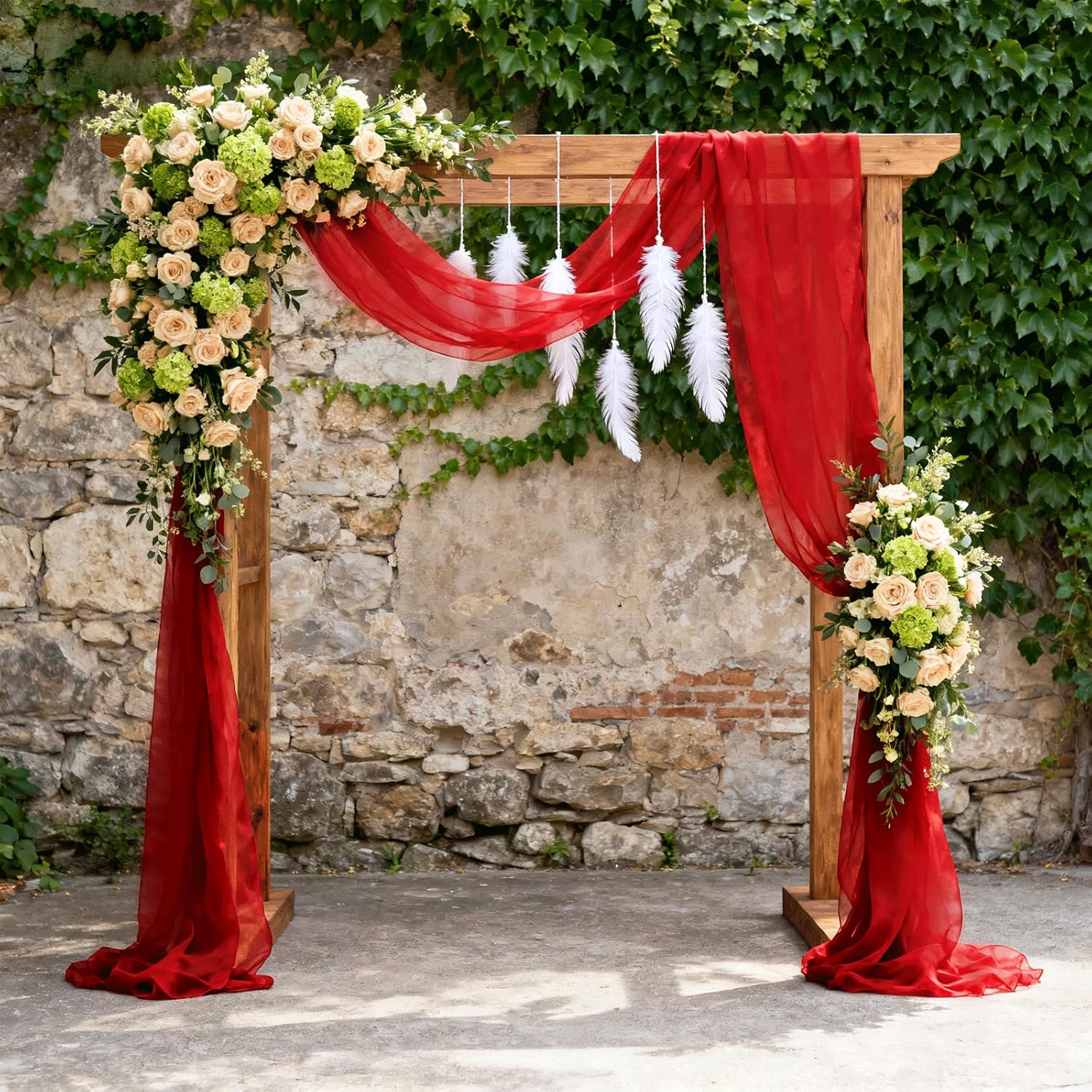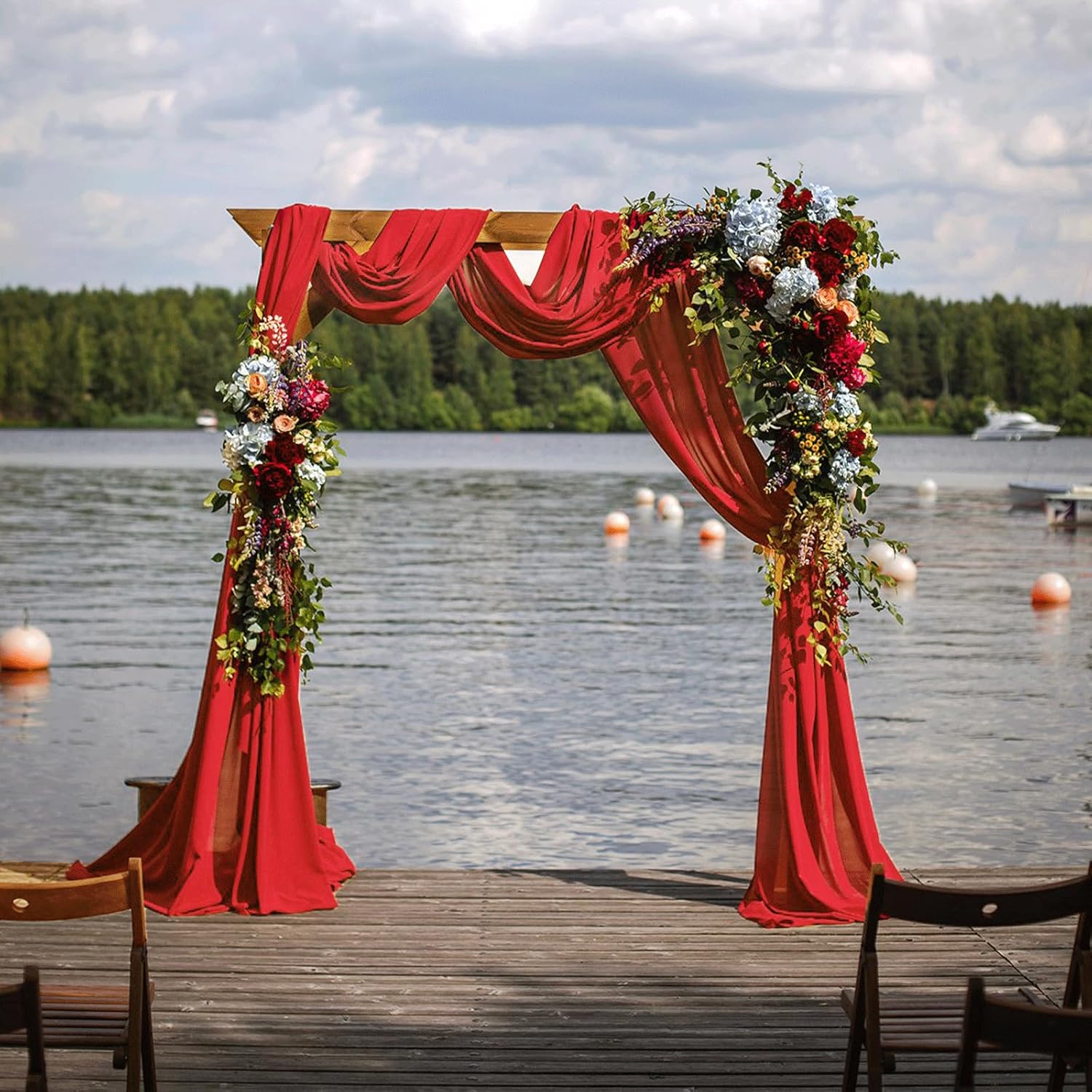 Wedding Arch Draping Fabric 29" x 18 FT Red Sheer Chiffon Outdoor Curtain Drapes for Wedding Birthday Party Ceremony Decor(2 Panels, Red)