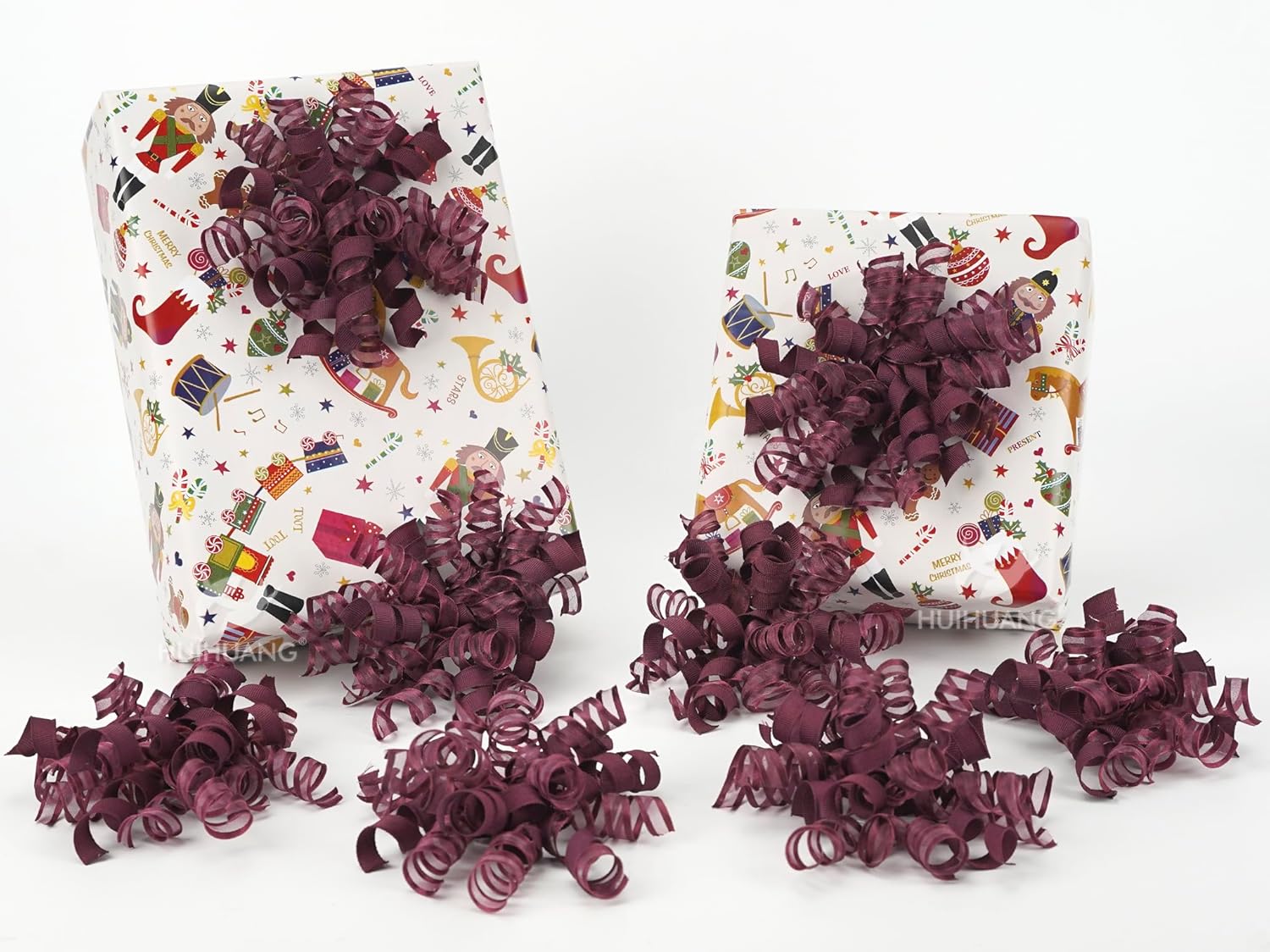 HUIHUANG Christmas Bows for Gift Wrapping Burgundy Curly Gift Bow 5 inch x 8 Counts Wine Red Self-Adhesive Xma Bows for Presents, Paper Bag, Party Favors, Wrapping Accessories