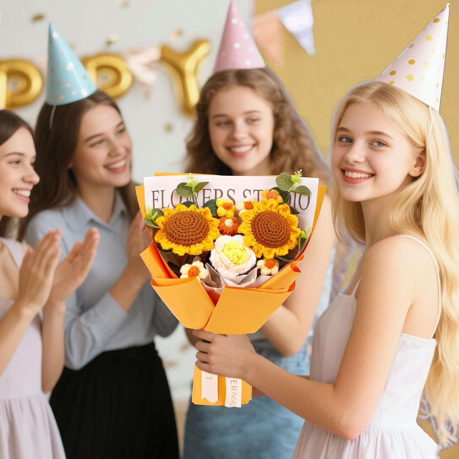 - High-Quality Materials: Each crochet flower is carefully crocheted with high-quality milk cotton yarn, which is soft and skin-friendly, with a delicate and gentle touch. Paired with exquisite high-end packaging gift bags, from the details to the overall design, it highlights the craftsmanship and style, giving every companionship and blessing a gentle and lasting sense of ritual.