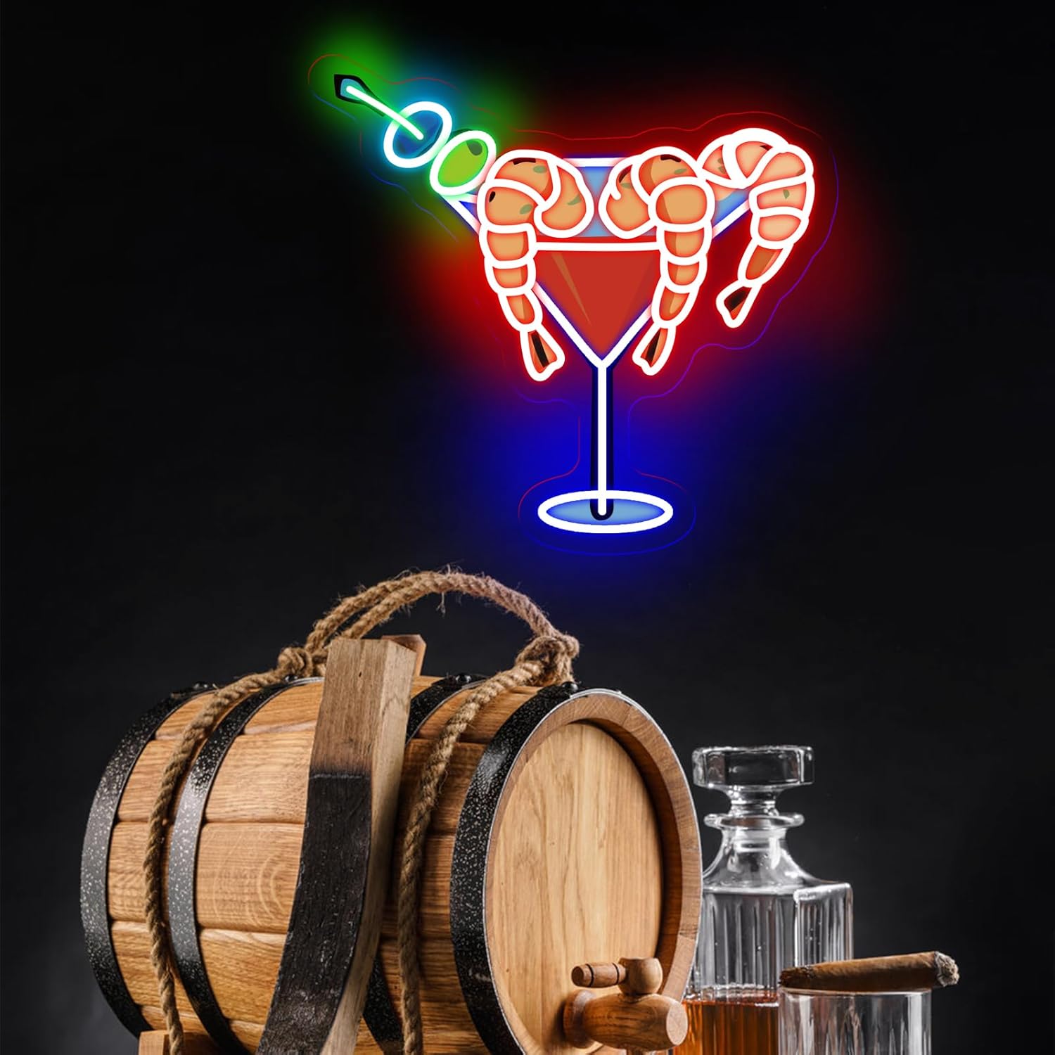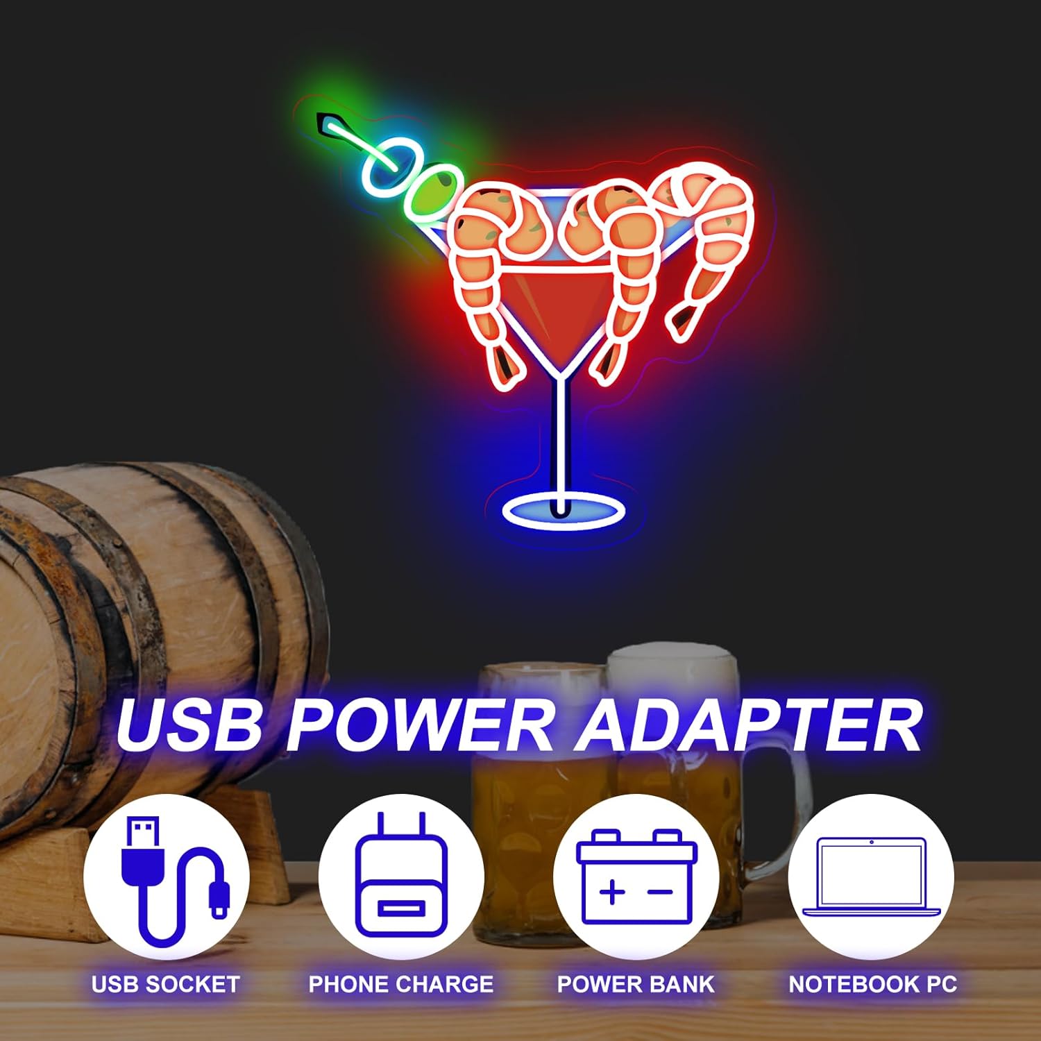 - What you get: Shrimp martini neon sign x1, hanging chain x1, wall hooks x2. Every LED light undergoes rigorous quality checks before it ships. If you have any problem with our neon light, please feel free to contact us. We will try our best to serve you