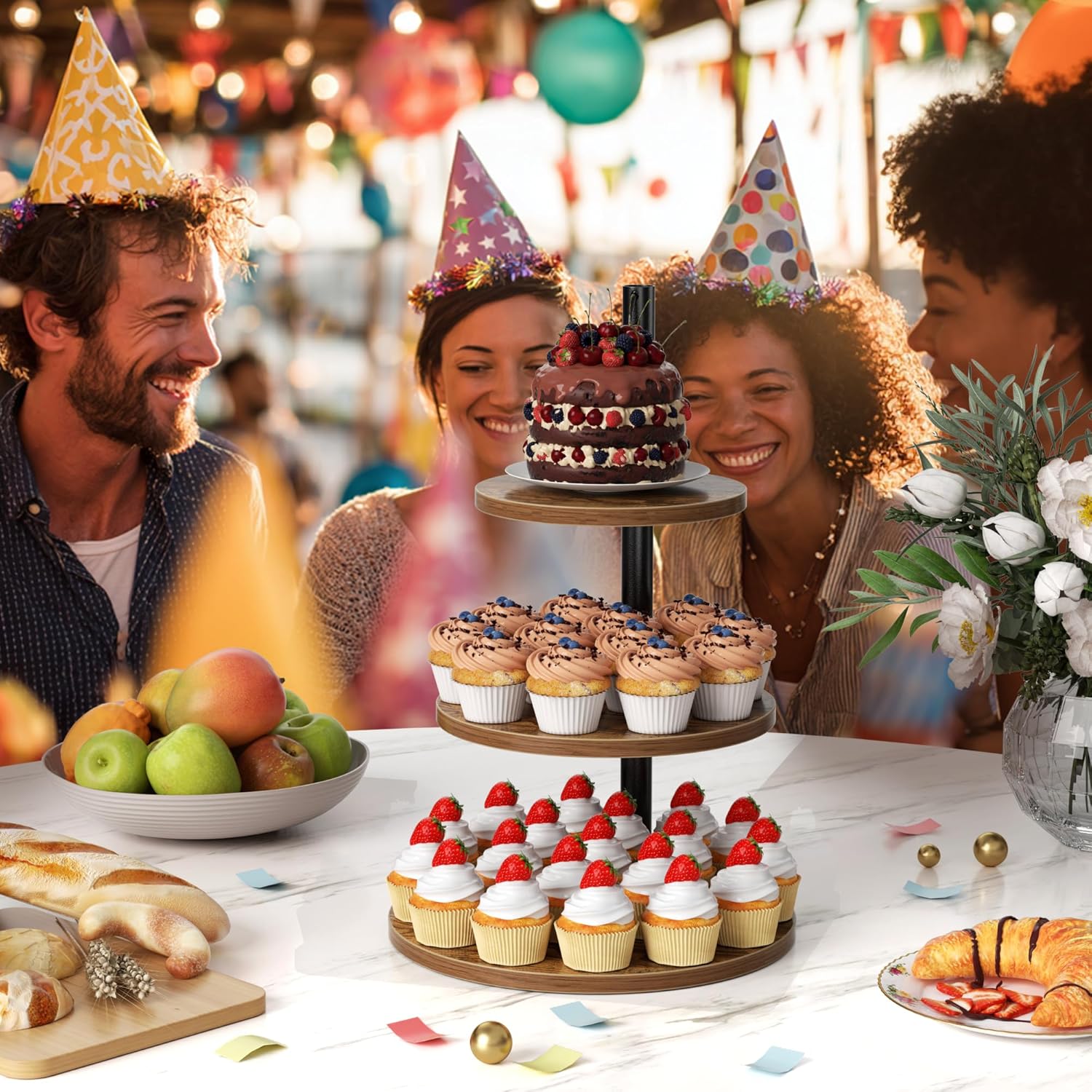 - 【Multi-Use Wooden Dessert Stand】This isn’t just a cupcake tower—it's a stylish wooden tiered tray stand that works all year round. Use it for appetizers at Thanksgiving, candles at Christmas, or bath bombs at vendor fairs
