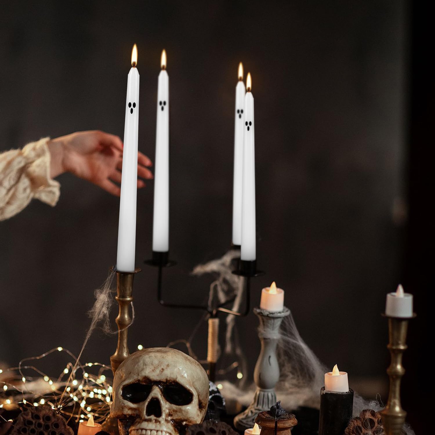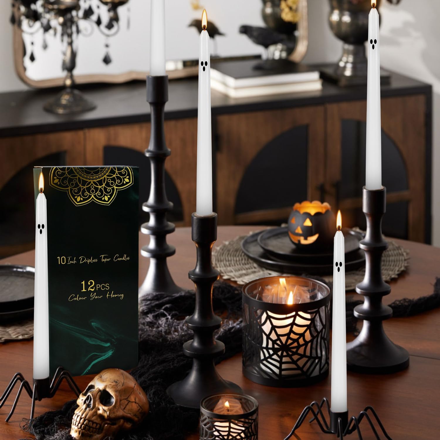 - π Spooky & Festive Halloween Taper Candles β Set the perfect eerie mood with these 10-inch white ghost face candles! Ideal for Halloween parties, haunted house decor, spellbinding centerpieces, or adding a chilling touch to your Gothic dinner table.