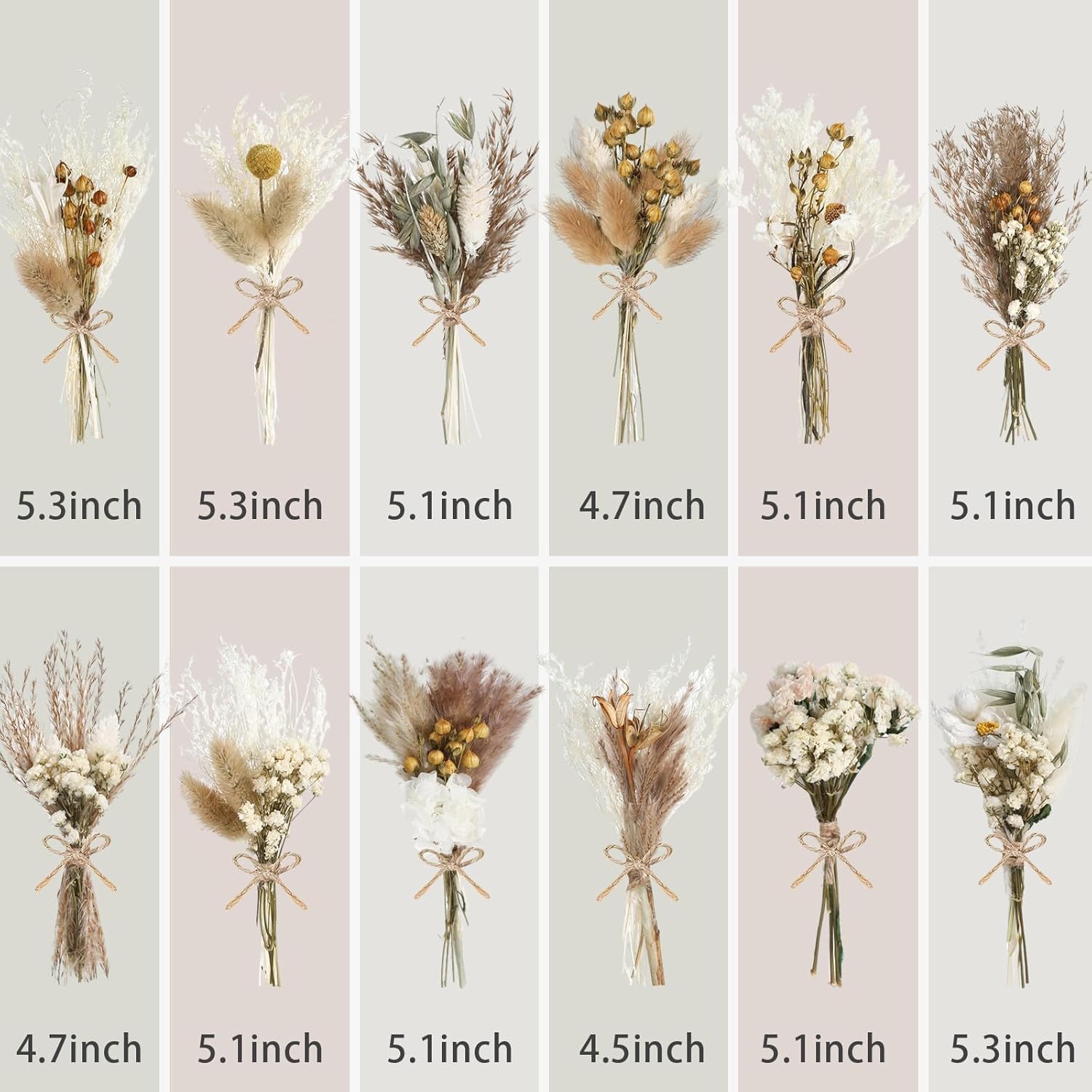 - Small and delicate: The bouquet is 5.3-5.9 inches (13-15 cm) long and delicate and lovely. The stems are firm and fit easily into vases. Compared with fresh flowers, dried flowers have a longer shelf life and are not easily wilted. Whether it is used for DIY handicrafts or packaged into mini bouquets, it can bring a lasting natural atmosphere to weddings, homes and other Spaces
