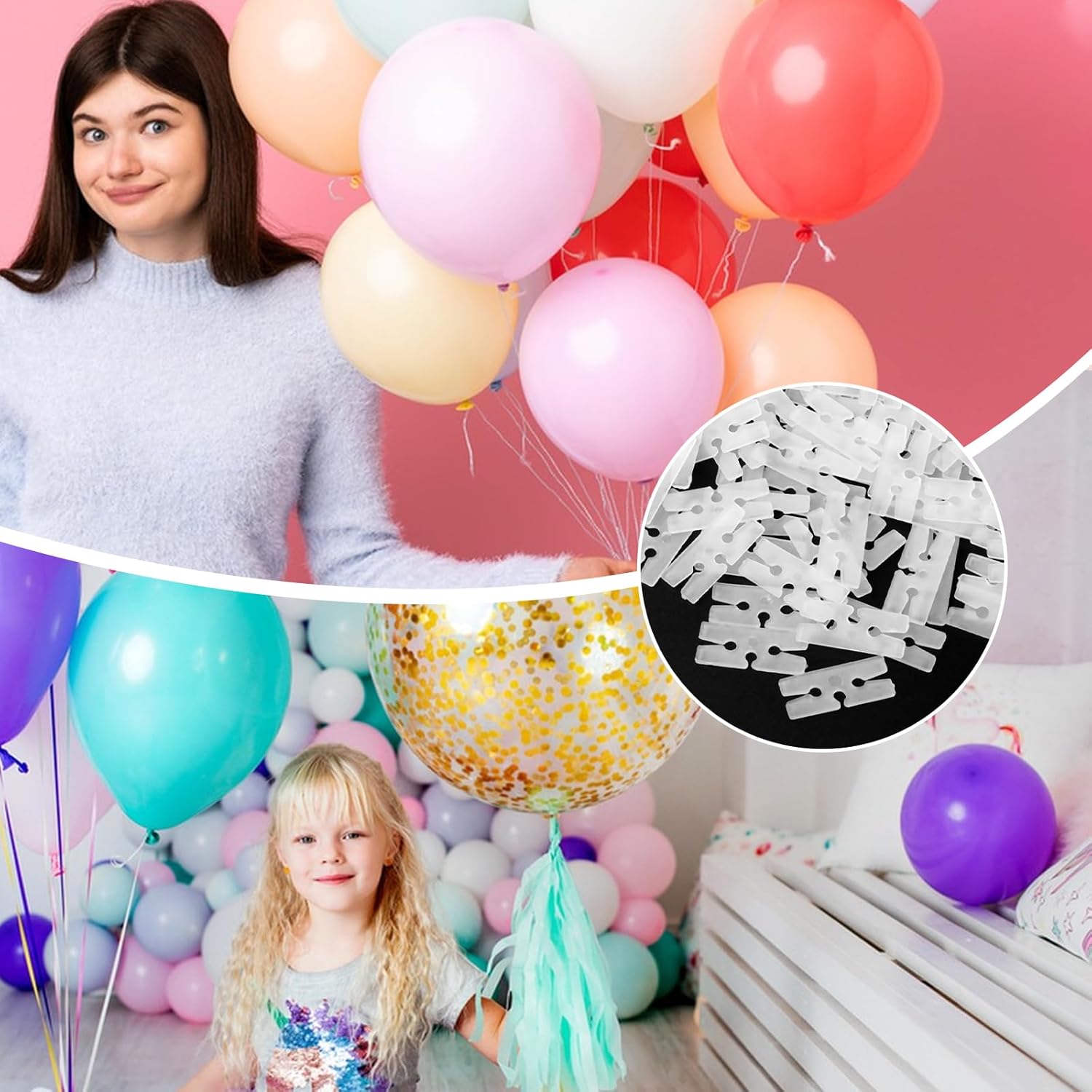 - Essential for All Celebrations -balloon clips to tie off balloons with H-shaped design provides a secure seal, replacing messy knots or flimsy string that can pop balloons,you’ll have plenty for balloon arches, garlands, centerpieces, or individual balloons. Ideal for decorating any type of party or event, such as weddings, Christmas, birthday parties, baby showers,holiday gatherings and any Events, these clips simplify setup and ensure your decor stays vibrant from start to finish.