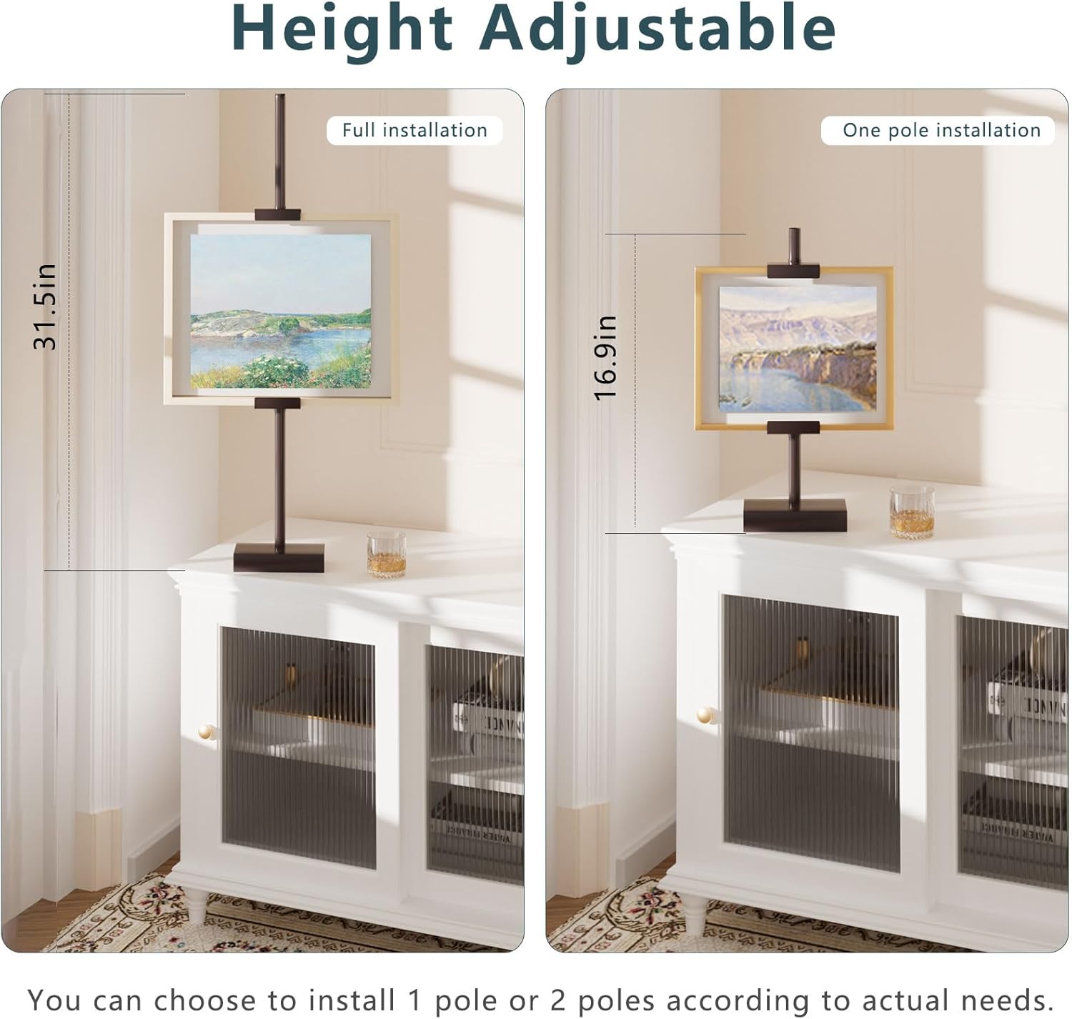 - ADJUSTABLE: Experience the ultimate flexibility in showcasing your artwork and memories with our adjustable art display stand for table. Freely adjustable height to fit your frame(up to 29.5"H, 1.5"D). Note: Please do not overtighten while adjusting to avoid damaging the coating.