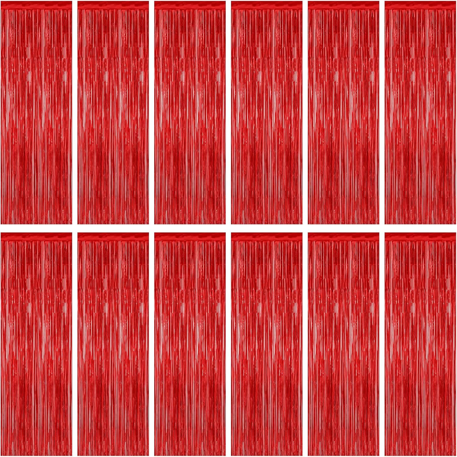12 Pack Red Curtains, 3.28 FT x 7.05 FT Party Streamer, Metallic Party Backdrop Birthday Streamer Foil Curtains, Fringe Tinsel for Red Party Decor Casino Theme Decorations Party Supplies