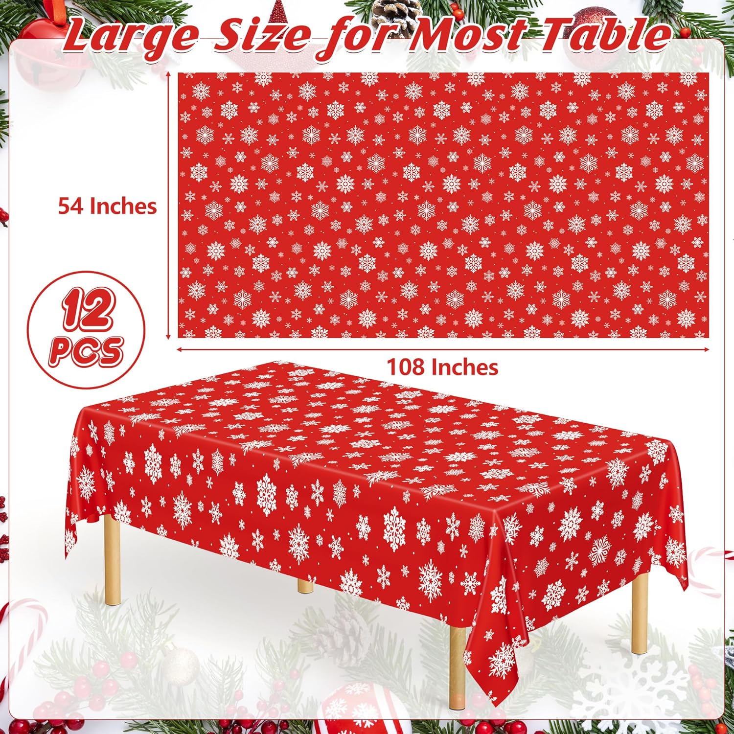 - Package Includes: You will receive 12 pack Christmas rectangle tablecloths, each measuring 54" x 108", an extra-large size suitable for various rectangle tables and oval tables.