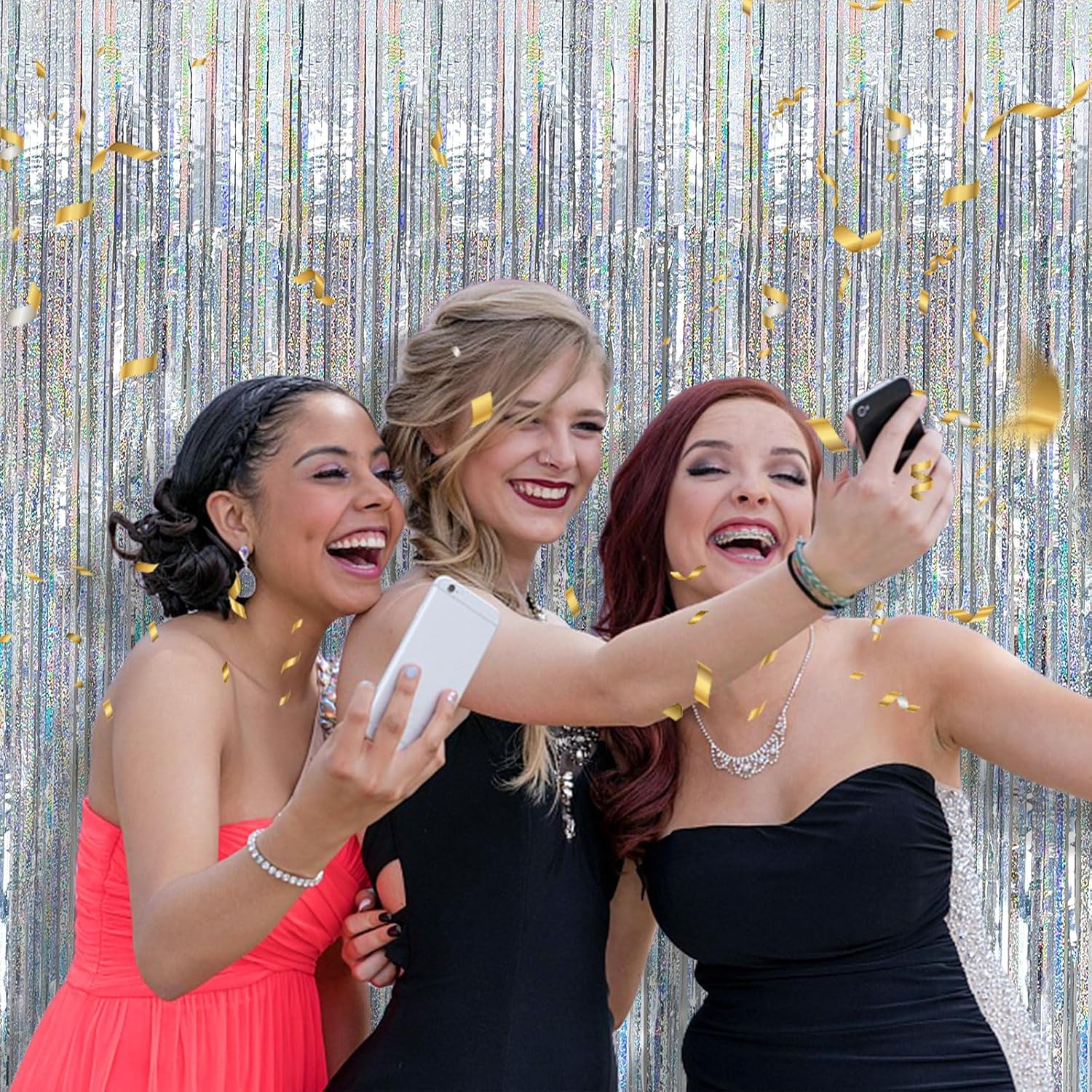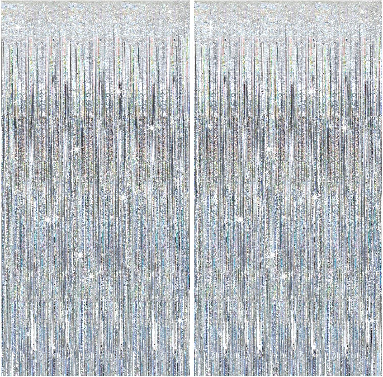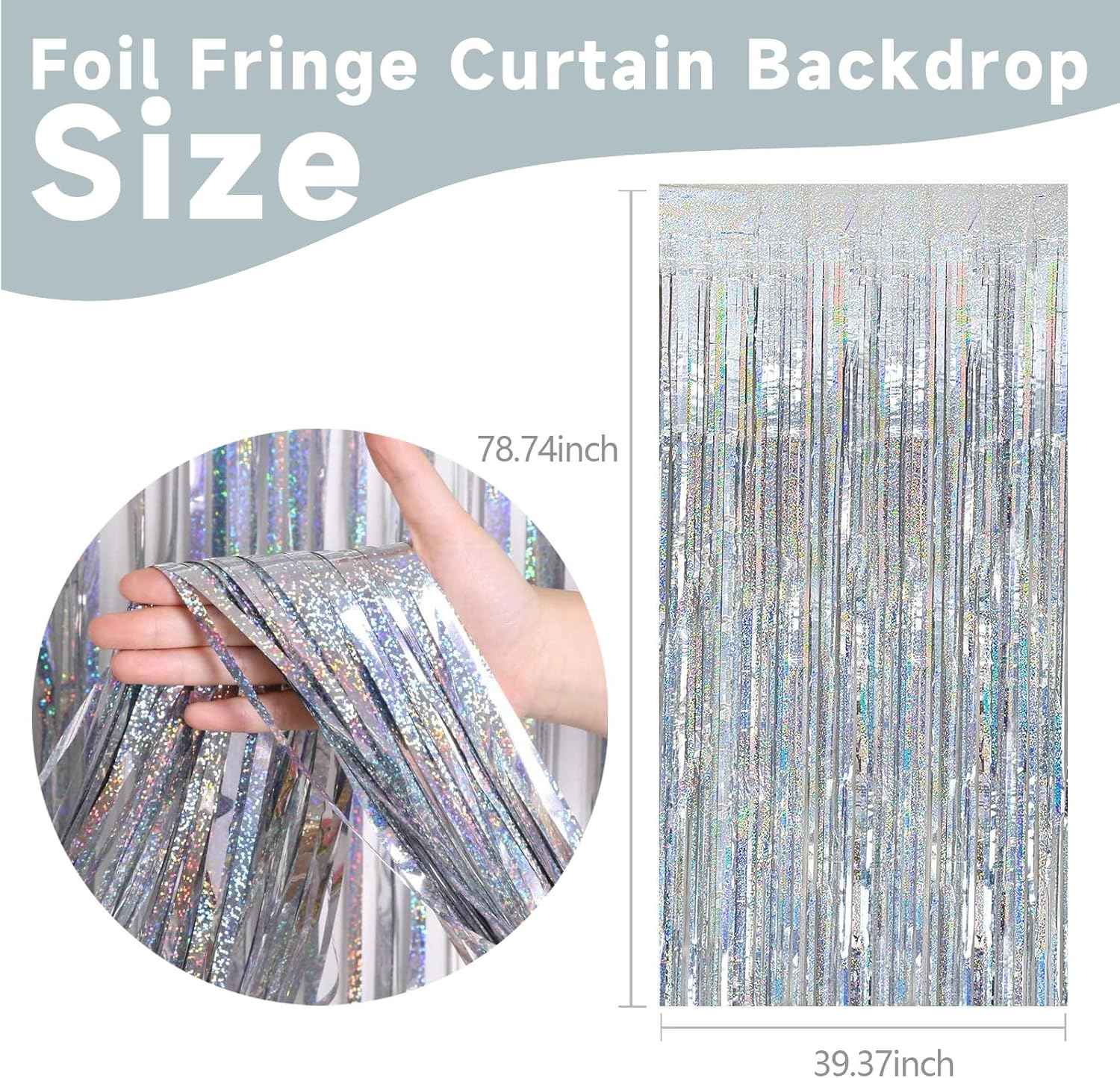 - Glitter Fringe Backdrop Set (2-Pack): Each dazzling curtain measures 3.28ft x 6.56ft β perfect for doors, walls, or photo booths! These extra-long foil streamers instantly transform any space into a party-ready celebration zone. Mix, layer, and customize your decor for the best results.