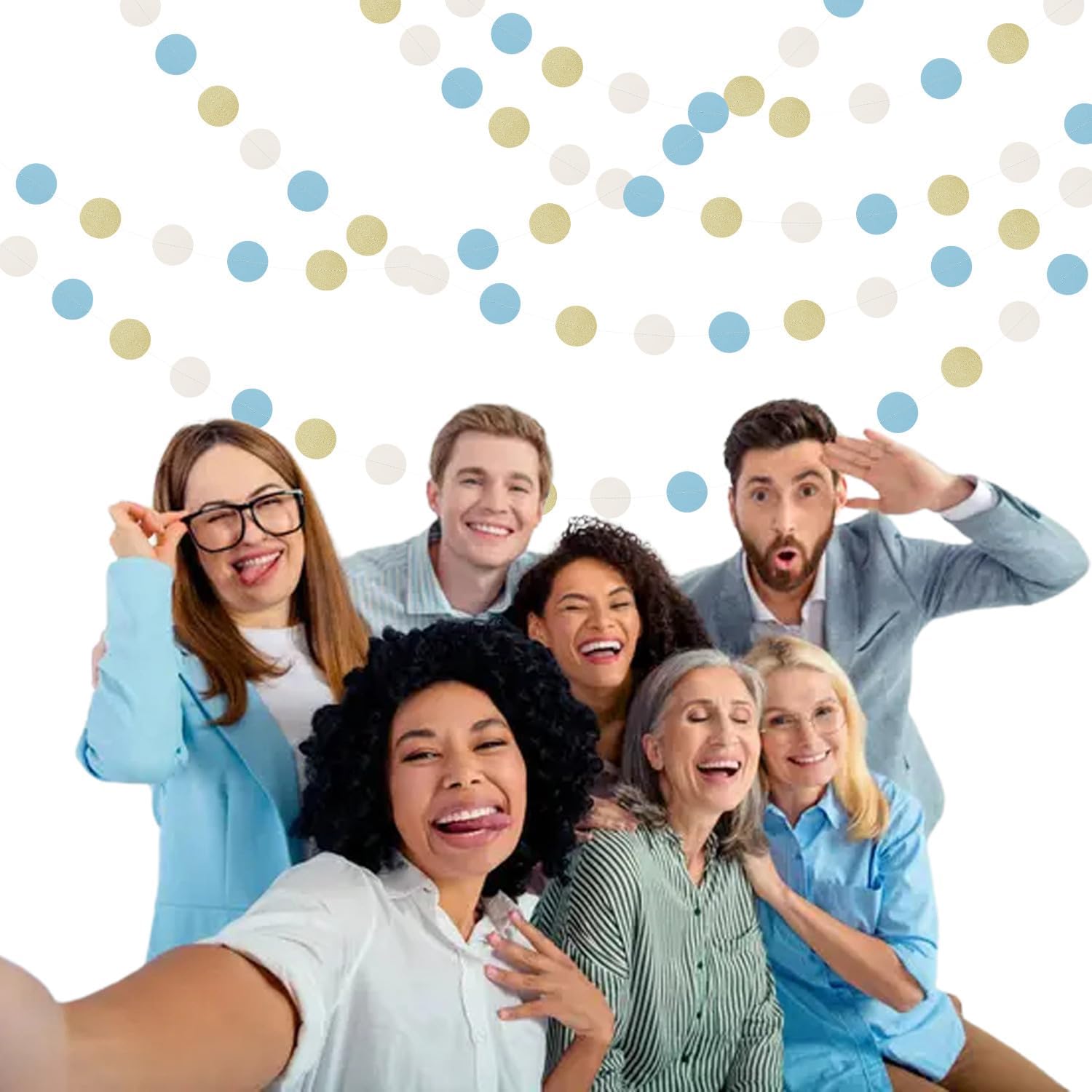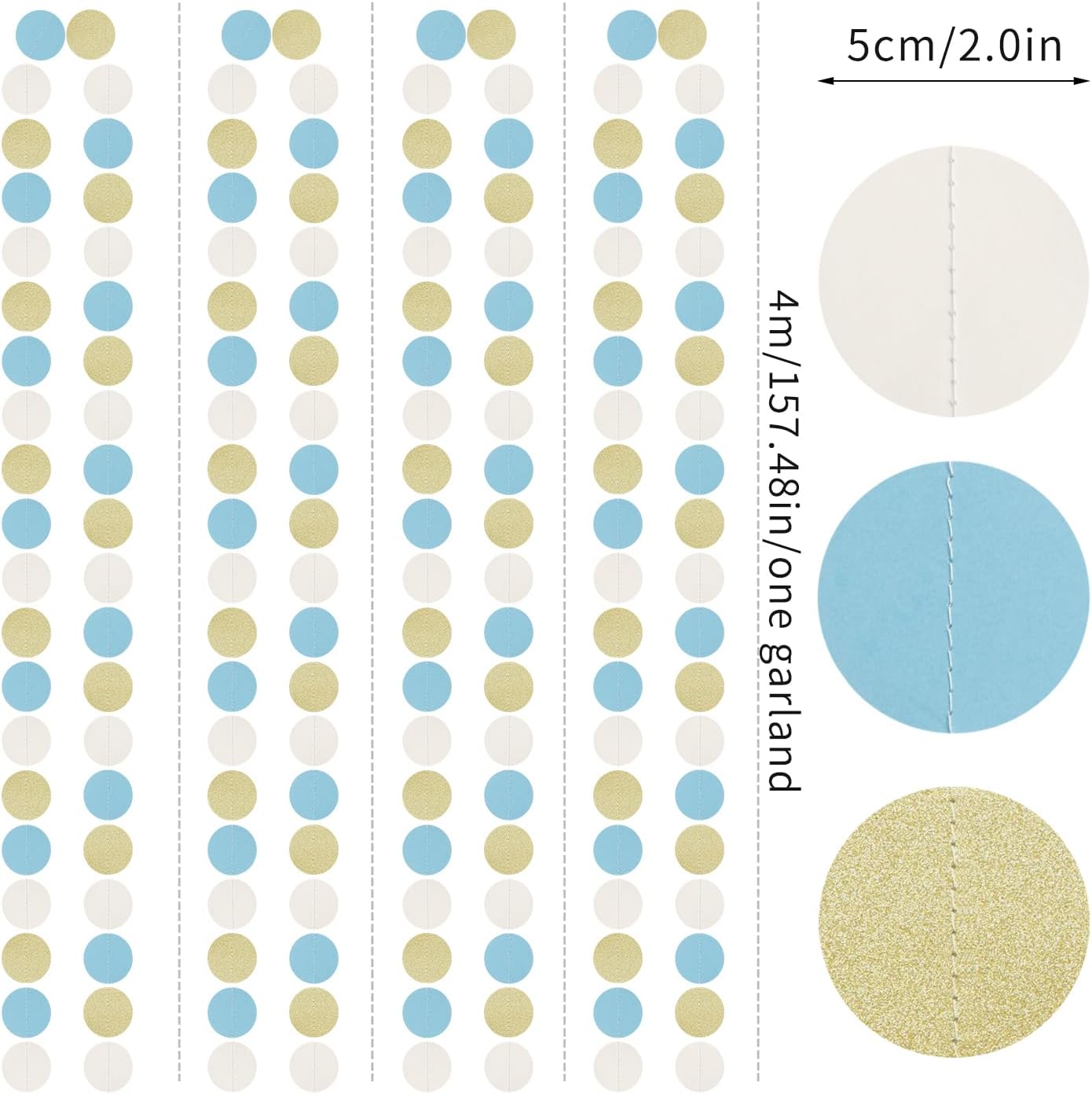 - 【Material】The material is eco-friendly colorful paper,Dusty-Blue Beige Gold.You can cut to any length you want if you need shorter length.The dots cut very neatly.