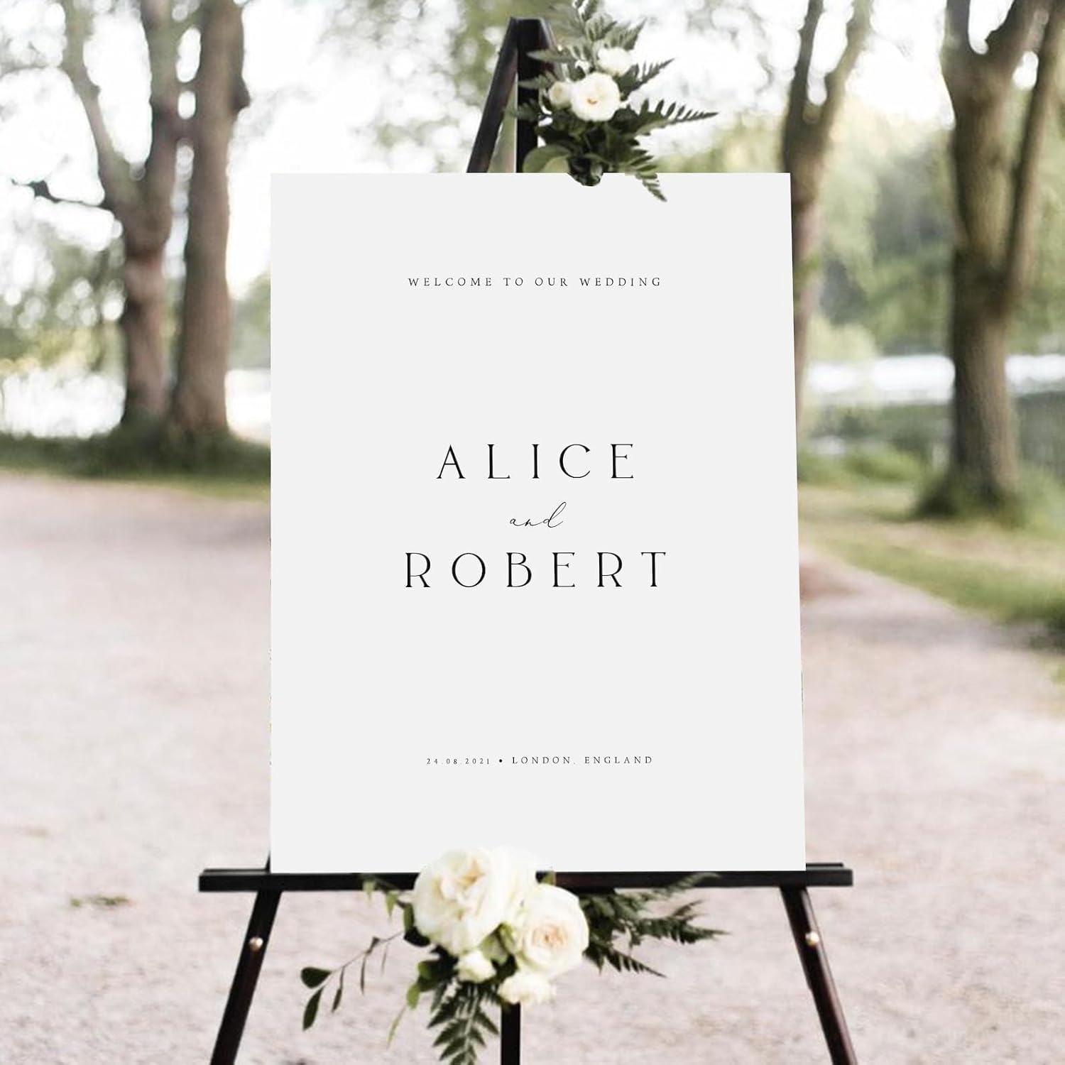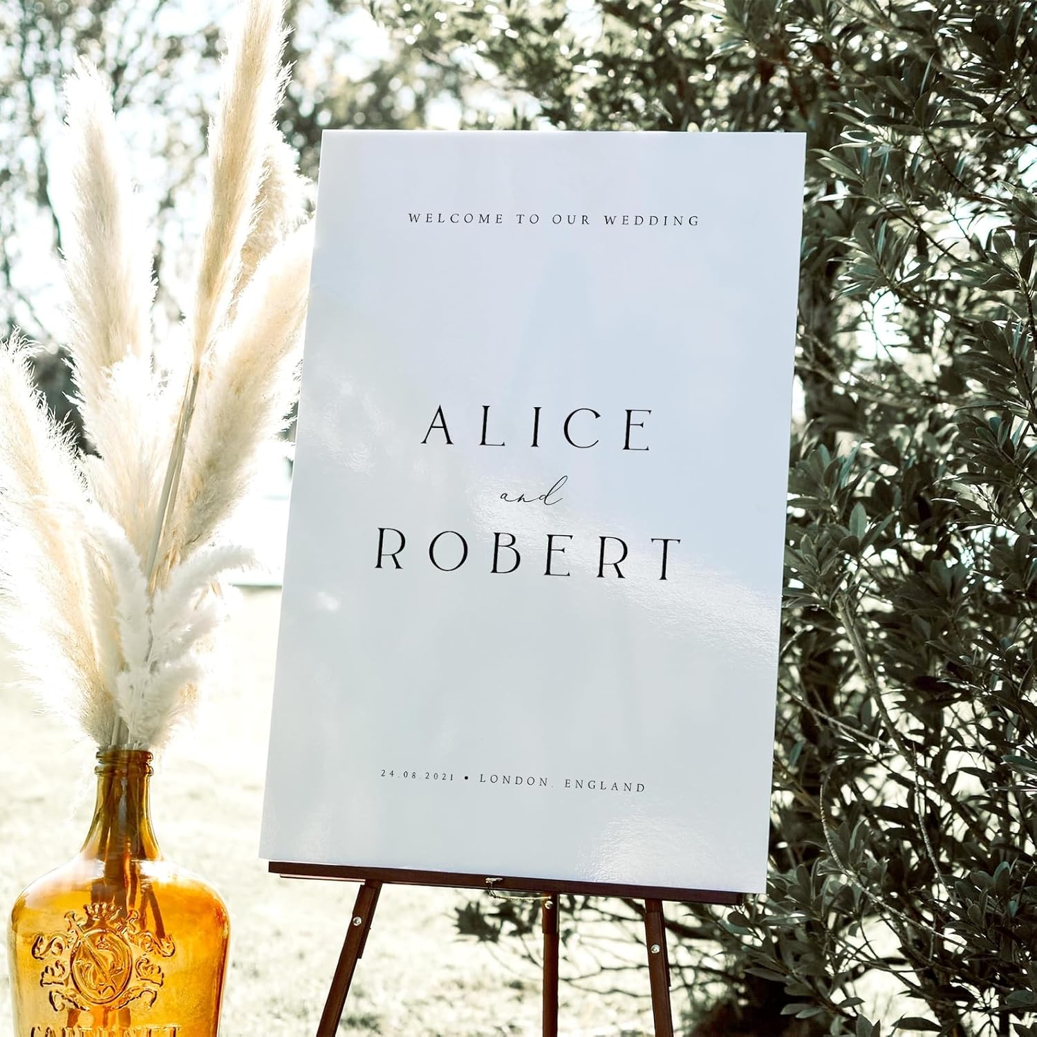 Welcome Wedding Sign Personalized, Minimalist Wedding Sign Decorations Signage 12" X 18" (Small), 27" (Medium), 36" (Large), Plastic, Modern, Pole Mount, Weather