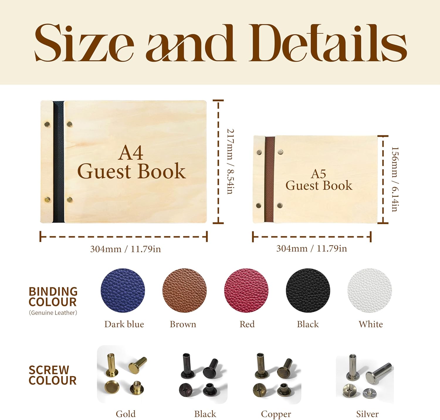 - Beautiful & High-Quality Cover - The Wooden Guestbook Cover is made of high quality genuine leather which can be freely matched with customization options. With a wood cover that is 3.5–4 millimetres thick and sturdy metal spiral binding, this sign-in book provides a flat and secure writing surface, ensuring an effortless experience for all your guests.