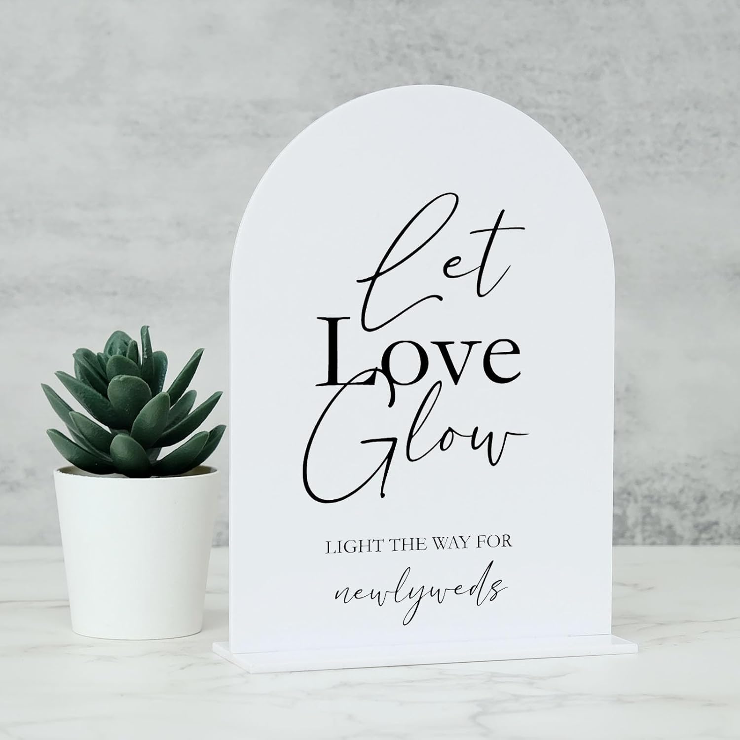 - Package Includes: You will receive a white arch acrylic Let Love Glow Sign with base, smooth edges,1/8 inch thick.