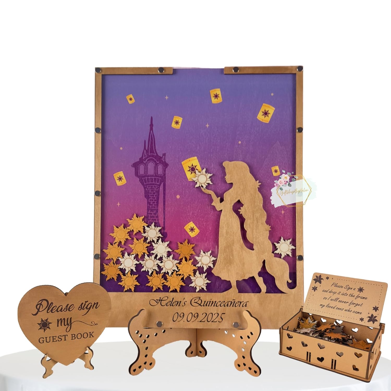Princess Guest Book Alternative | Quinceañera Sweet XV Wooden Dropbox Frame with Lantern Tokens | Personalized Fairytale Guestbook Keepsake