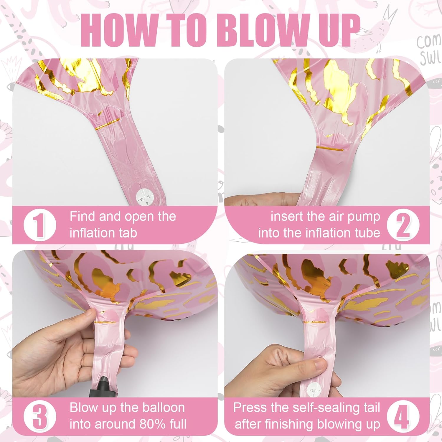 - Easy to Use: Use an electric pump to inflate the metallic pink cheetah balloon until the creases disappear, achieving a round and smooth effect. Stop inflating as soon as the creases disappear.