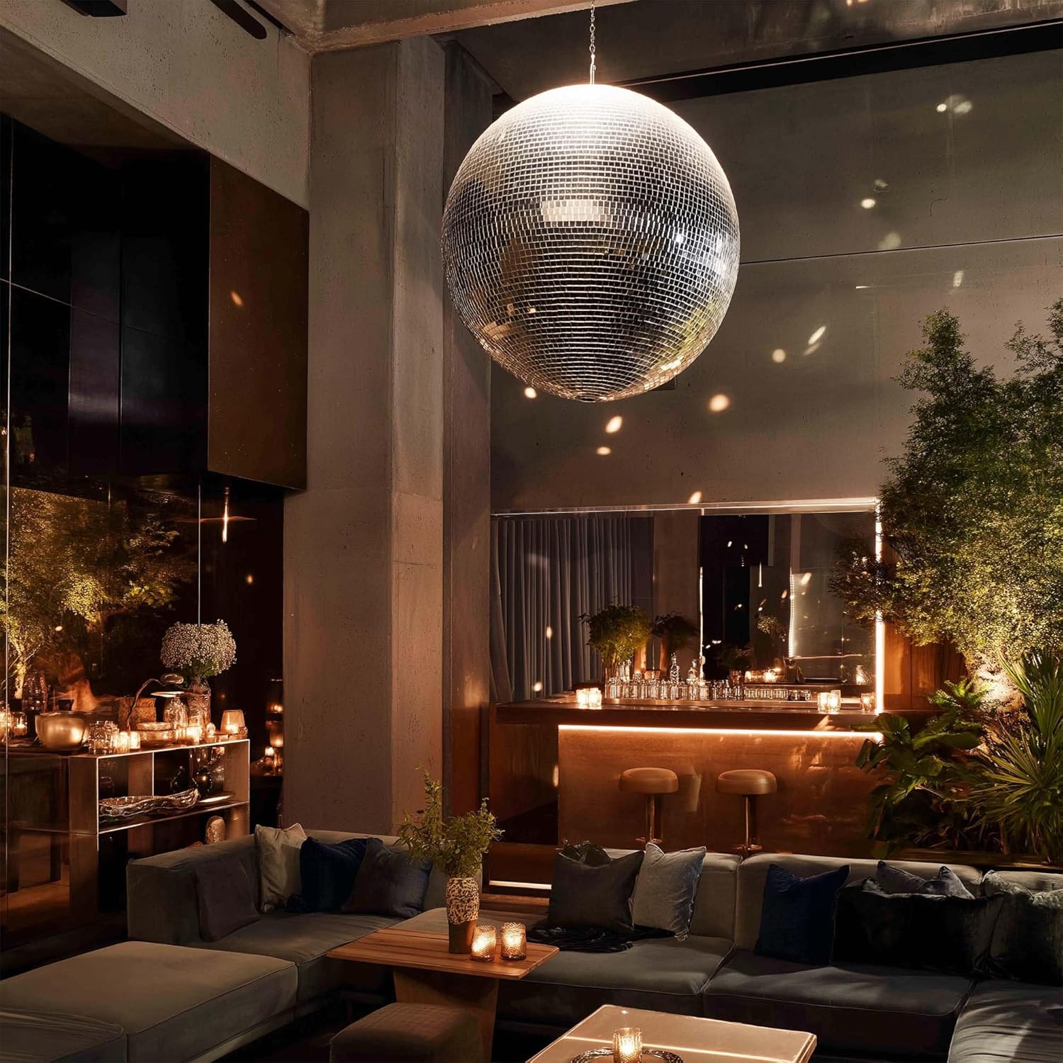 - Easy Installation - No assembly required, with a built-in hanging ring that easily attaches to a rotating motor, or place the mirror ball on the floor or anywhere you like for decoration