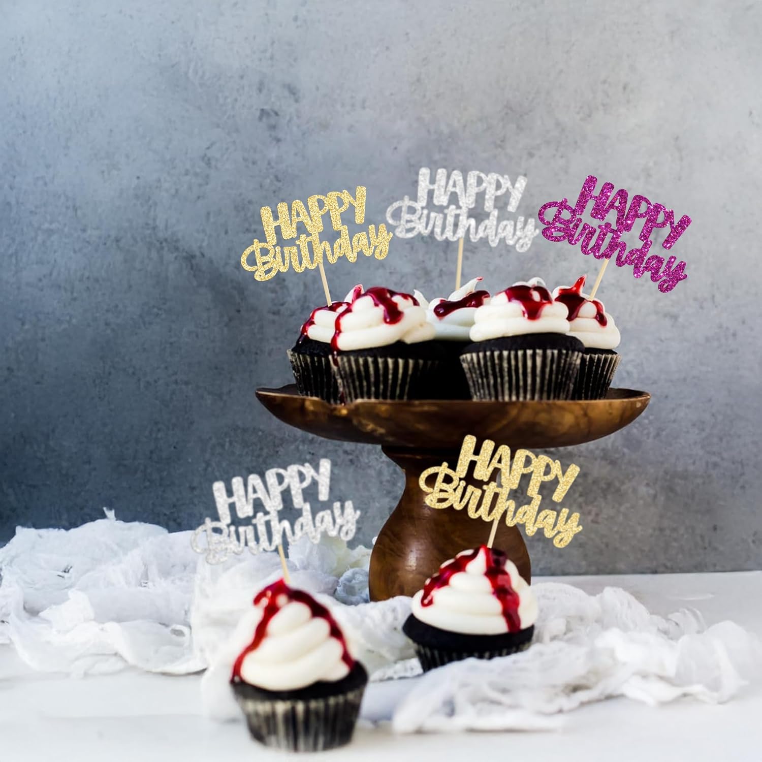 - 🌟 Premium Material: These glitter happy birthday cupcake Toppers are made of high quality paper and food-grade toothpick, very safe to put them on cakes, cupcakes, ice cream, fruits, pie, dessert, cheese or any dish and food appetizer you want to decorate.