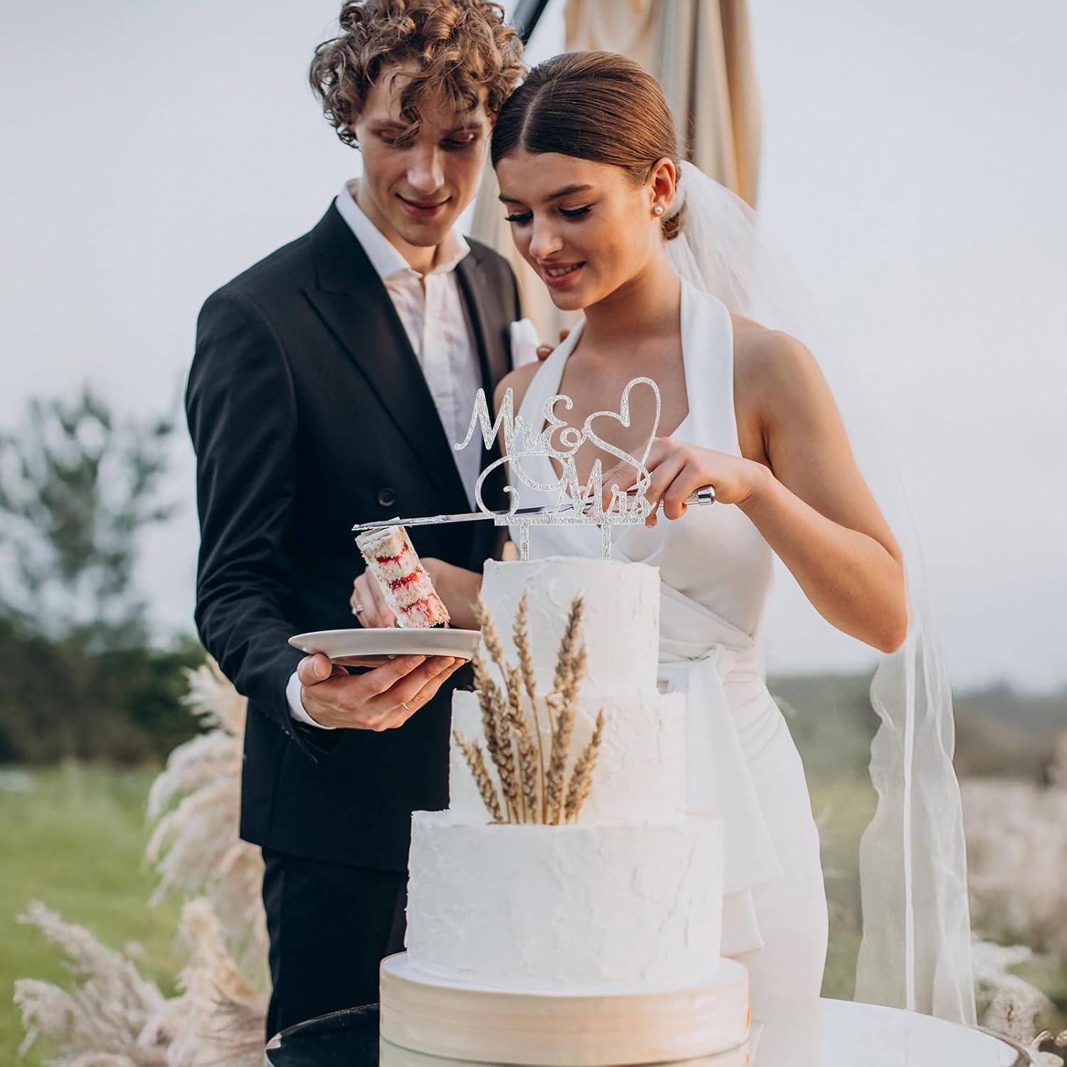 - 【Ideal Wedding Cake Decoration】:The mr and mrs wedding cake toppers is the perfect addition to your wedding cake decorations. Its sophisticated design and shimmering silver color create a memorable centerpiece for your special day.