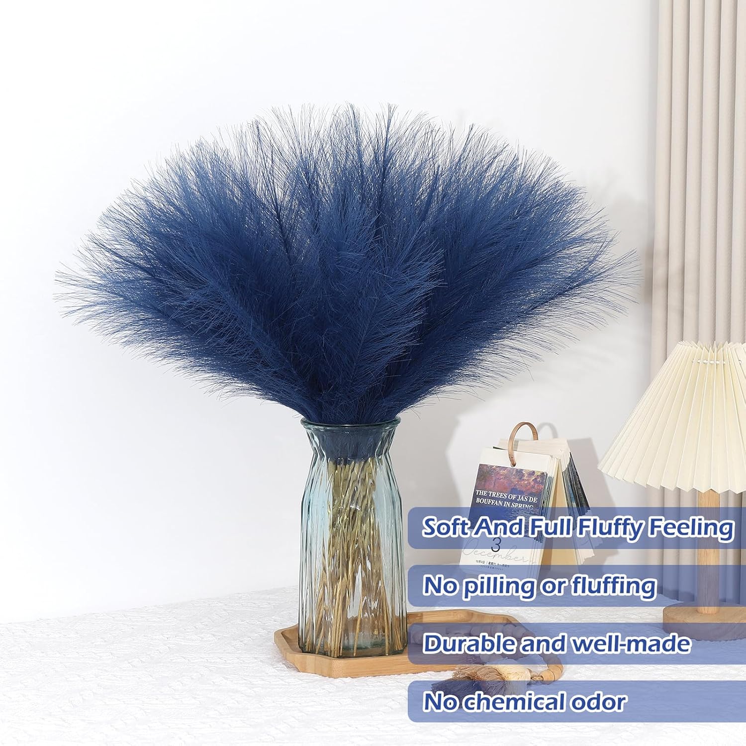 Blue Pampas Grass Decor 30 Pcs 21.7 Inch Faux Pampas Grass Bulk Artificial Dried Flowers Small Vase Filler Pompas Grass.